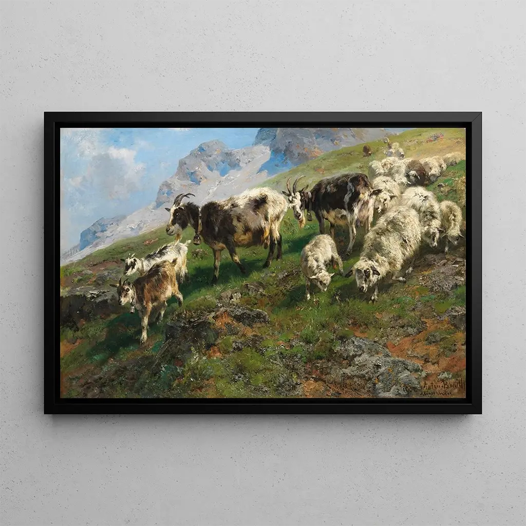 Kunsttrykket "Almabtrieb" af Anton Braith er et lærred, der harmonisk passer ind i forskellige rum, uanset om det er en stue, et kontor eller et soveværelse. Dets trykkvalitet og trofasthed mod de originale farver sikrer en uomtvistelig æstetisk appel. Ved at vælge dette billede tilføjer du et strejf af ro og natur til dit hjem, samtidig med at du hylder en mester i landskabskunst. Dette værk er ikke blot et dekorativt element, men også en invitation til fordybelse og flugt, hvilket gør dit rum til et sted med fred og skønhed.