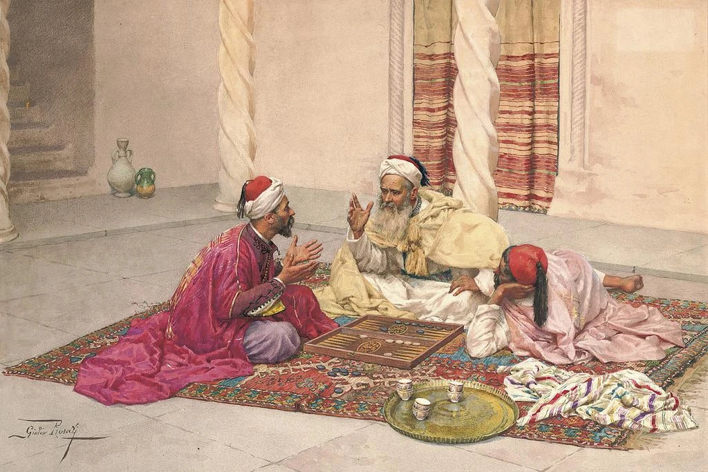 Kunsttryk af backgammon-spillere i en gård - Giulio Rosati | Kunsttryk