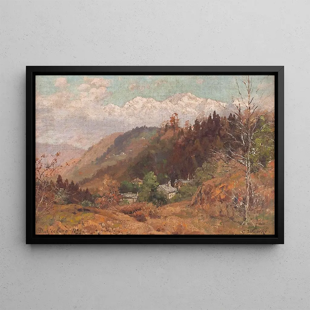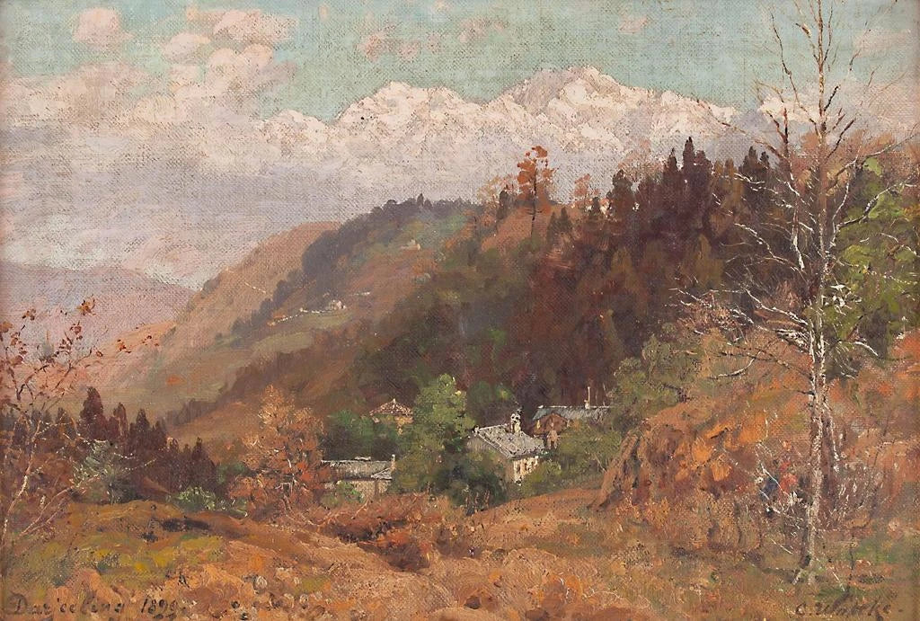 Carl Wuttke, maler fra det 19. århundrede, er kendt for sine fortryllende landskaber, der fanger essensen af de steder, han har besøgt. Påvirket af romantikken har han viet sig til at skildre naturen i al sin pragt. Hans karriere har ført ham til at udforske forskellige landskaber, men det er i Indien, han har fundet en uendelig inspirationskilde. "Landskabsbillede med bjerge i Vestbengalen" vidner om hans talent for at oversætte skønheden i eksotiske landskaber gennem et poetisk prisme. Wuttke har formået at indfange scener, der, selvom de er fjerne, rører ved en rørende universelhed.