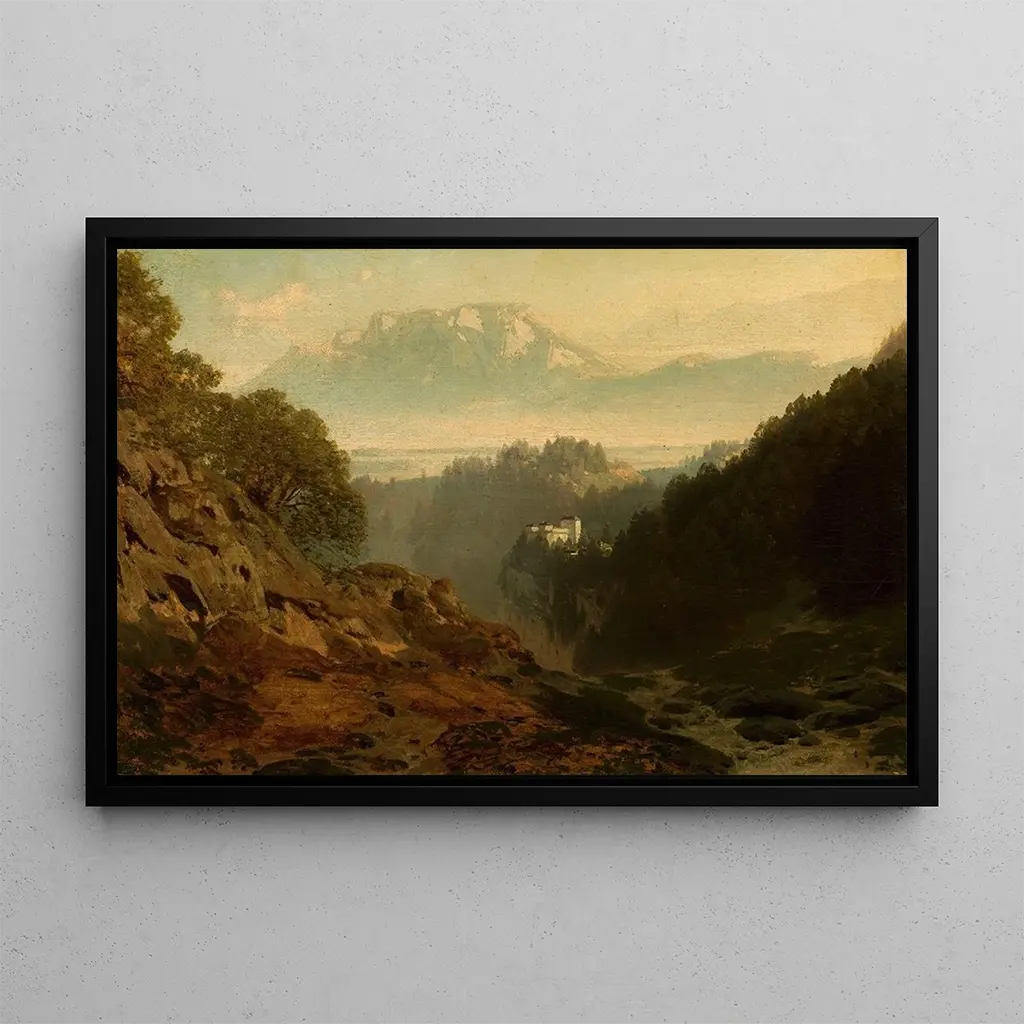 Kunsttrykket af Landskab med bjerg og slot er et dekorativt valg, der beriger ethvert opholdsrum. Uanset om det er i en stue, et kontor eller et soveværelse, tilføjer dette lærred et strejf af elegance og ro. Dets trykkvalitet sikrer en bemærkelsesværdig trofasthed til det originale værk, hvilket gør det muligt at nyde skønheden i de alpine landskaber fuldt ud. Med sin æstetiske tiltrækningskraft bliver dette kunsttryk et centralt element i din indretning, der inviterer til flugt og drømmeri, samtidig med at det bringer en varm og indbydende atmosfære til dit hjem.