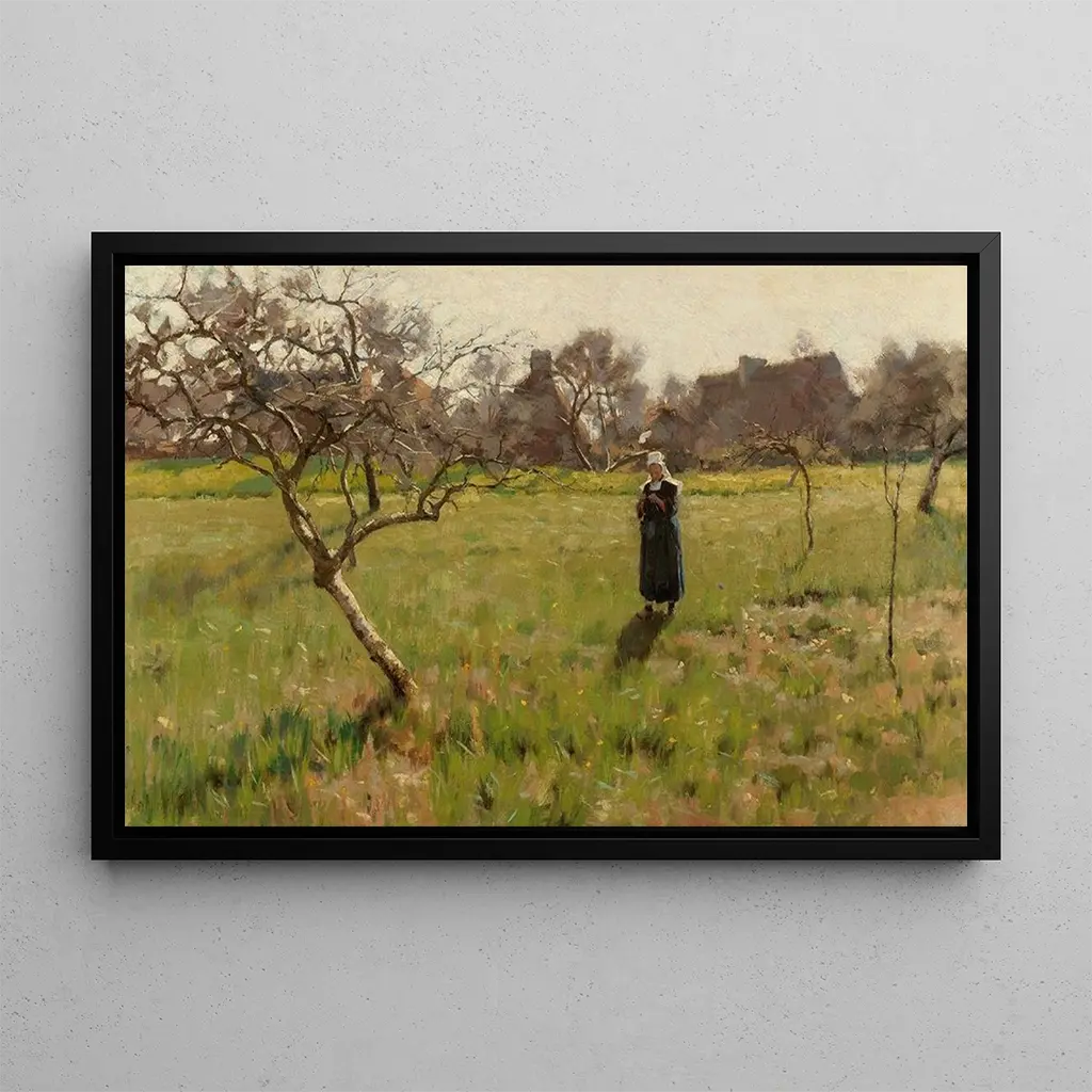 Champ de Bretagne med figur: en hyldest til den bretonske natur Den kunsttryk af Champ de Bretagne med figur, udført af Arthur Wesley Dow, fremkalder den vilde og fredelige skønhed i de bretonske landskaber. Dette lærred skiller sig ud med sin palette af livlige farver, hvor grønne og gule nuancer smelter sammen for at repræsentere den frodige vegetation. Tilstedeværelsen af en menneskefigur, harmonisk integreret i landskabet, tilføjer en narrativ dimension til værket. Dow, med sin impressionistiske teknik, formår at fange lyset og den bretonske atmosfære, hvilket giver en invitation til drømme og flugt i denne uberørte natur. Arthur Wesley Dow: en pioner inden for amerikansk kunst Arthur Wesley Dow, aktiv i slutningen af det 19. og begyndelsen af det 20. århundrede, er en amerikansk kunstner, hvis arbejde er påvirket af impressionismen og dekorative kunstarter. Han spillede en nøglerolle i at fremme kunst som et middel til personlig udtryk, og distancerede sig fra de akademiske konventioner i sin tid. Dow var også en indflydelsesrig lærer, der delte sin kunstneriske vision med mange elever. Hans innovative tilgang og interesse for naturen har gjort ham til en vigtig figur i udviklingen af amerikansk kunst, og Champ de Bretagne med figur er et perfekt eksempel. En dekorativ kunsttryk med mange fordele At vælge en kunsttryk af Champ de Bretagne med figur er at berige dit opholdsrum med et værk, der fejrer naturen og harmonien. Uanset om det er i en stue, et kontor eller et soveværelse, vil dette lærred tilføre et strejf af ro og friskhed til din indretning. Kvaliteten af trykket sikrer en bemærkelsesværdig trofasthed til det originale værk, hvilket gør det muligt at værdsætte hver nuance og detalje. Med sin æstetiske tiltrækningskraft bliver dette lærred et centralt element i din indretning, der vækker beundring og forundring hos dine gæster, samtidig med at det skaber en beroligende og inspirerende atmosfære.