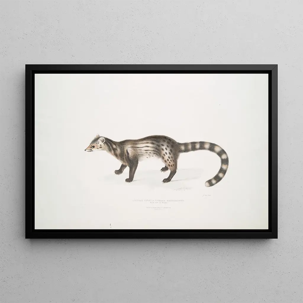 John Edward Gray, britisk naturforsker og zoolog, fra det 19. århundrede, spillede en afgørende rolle i dokumentationen af dyrelivet. Hans værker, ofte skabt til videnskabelige publikationer, vidner om en tid, hvor udforskning og klassificering af arter var på sit højeste. Påvirket af opdagelser fra sine samtidige, formåede Gray at kombinere videnskabelig stringens med kunstnerisk sans. Hans arbejde med kunsttrykket af Civetten fra Bengalen er en del af en tradition for illustration, der har til formål at uddanne offentligheden samtidig med at fejre naturens skønhed. Hans bidrag til zoologien og kunsten forbliver betydningsfuldt, og markerer en æra, hvor kunst og videnskab gik hånd i hånd.