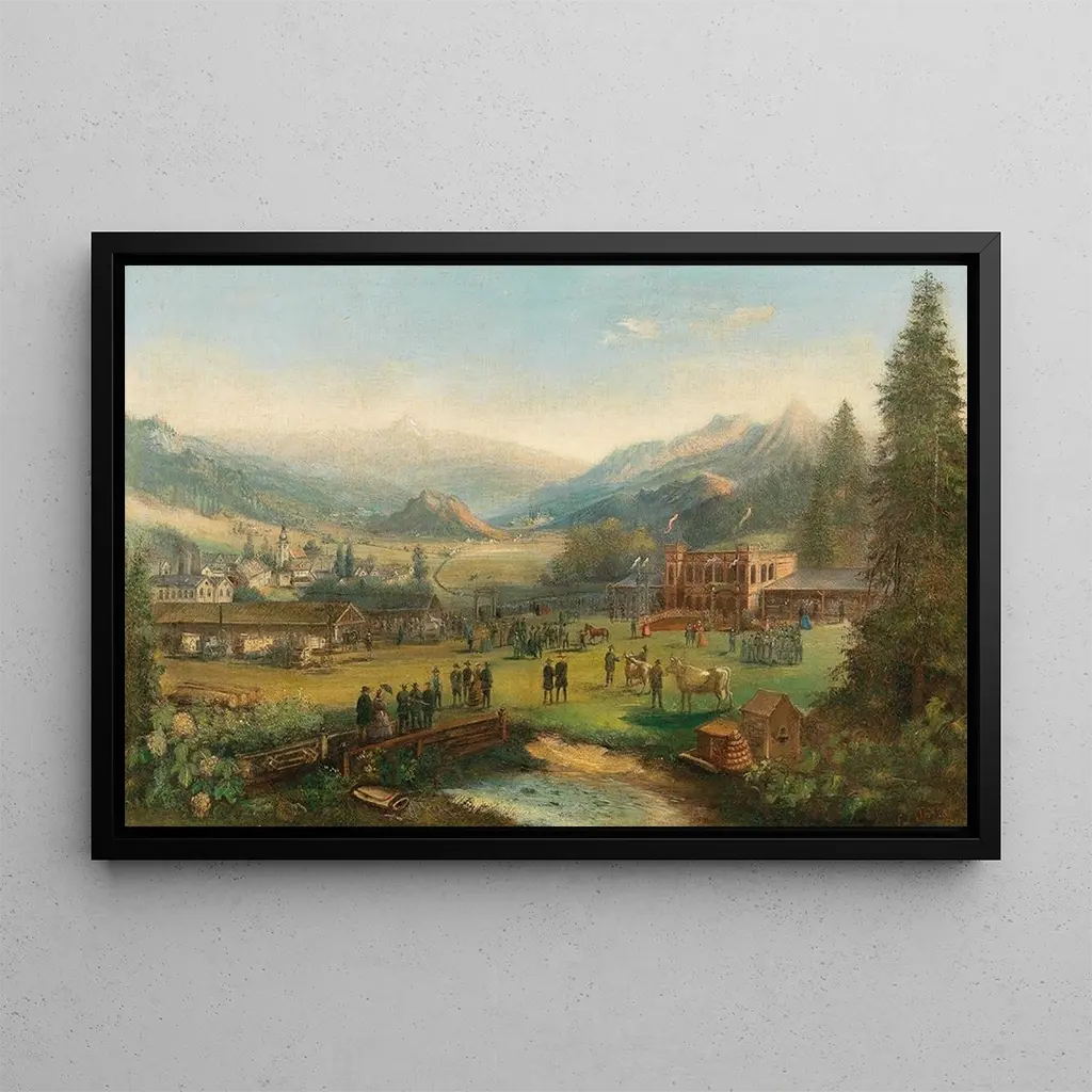 Den "Vallée med fabrik og festbygning" af Carl Thöndel præsenterer et landskab, hvor natur og menneskeskabt arkitektur eksisterer i harmoni. De grønne nuancer i dalen står i kontrast til de industrielle strukturer, hvilket skaber en visuelt fængslende balance. Thöndels teknik, kendetegnet ved præcise detaljer og subtil belysning, giver liv til denne scene, hvor man næsten kan høre naturens hvisken og menneskets aktivitet summen. Dette kunsttryk inviterer til refleksion over forholdet mellem mennesket og dets omgivelser, samtidig med at det fejrer landskabets skønhed.