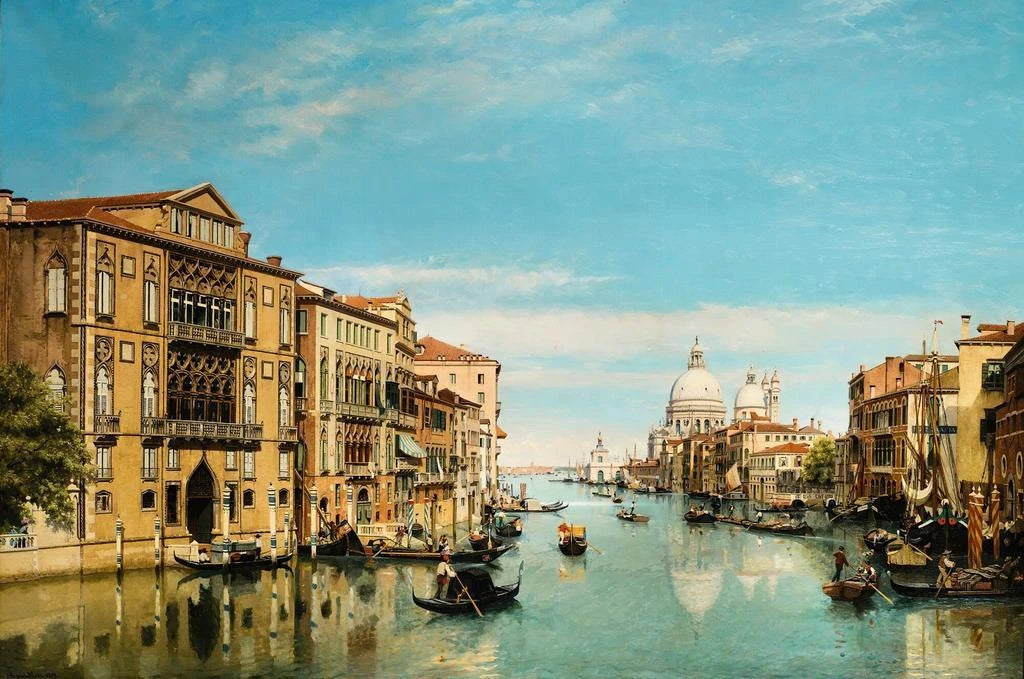 Jean-Baptiste van Moer, aktiv i det 19. århundrede, er kendt for sine bylandskaber, der fremhæver skønheden i europæiske byer, og Le Grand Canal Venise er et emblematisk eksempel. Påvirket af romantikken formår han at fange essensen af Venedig, en by rig på historie og kultur. Hans værker er ofte gennemsyret af en poetisk atmosfære, hvor lys og vand spiller en central rolle. Van Moer har formået at indfange scener fra dagligdagen, og hylder den pragtfulde arkitektur i Venedig og dens unikke stemning.