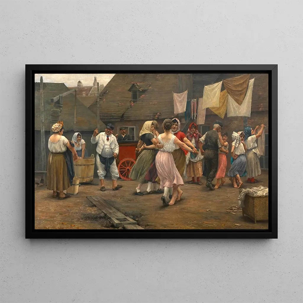 Un bal sur la Hängstatt : en dans dans hjertet af den viennese livsstil Den kunsttryk Un bal sur la Hängstatt af Josef Engelhart dykker ned i stemningen ved en viennese bal, hvor glæde og elegance mødes. Dette værk, rigt på livlige farver og dynamiske bevægelser, skildrer par, der danser, iført elegante kostumer. Det dæmpede lys og de fine skygger skaber en festlig og romantisk atmosfære, typisk for de høje samfunds aftener. Engelhart, med sit talent for at fange bevægelse, formår at formidle energien og spændingen ved denne sociale begivenhed, og inviterer betragteren til at føle euforien ved dansen og musikken. Josef Engelhart : glansen af den Belle Époque Josef Engelhart, østrigsk maler aktiv i slutningen af 1800-tallet og begyndelsen af 1900-tallet, er en ikonisk figur i Belle Époque. Hans stil, påvirket af secessionistbevægelsen, kendetegnes ved en særlig opmærksomhed på detaljer og en palette af livlige farver. Engelhart blev uddannet ved Wiener Kunstakademi, hvor han udviklede sin kærlighed til at skildre socialt liv og festlige begivenheder. Hans værker betragtes ofte som et spejl af den ubekymrede og elegante tid, og fanger øjeblikke af fælles glæde i det viennese højere samfund. En dekorativ kunsttryk med mange fordele Kunsttrykket Un bal sur la Hängstatt er et dekorativt valg, der vil berige dit hjem. Uanset om det er i en stue, en reception eller et kontor, tilføjer dette billede et strejf af sofistikeret elegance og dynamik. Dets trykkvalitet sikrer en bemærkelsesværdig trofasthed over for farver og detaljer i det originale værk, hvilket gør det muligt fuldt ud at værdsætte den livlige scene, det skildrer. Det æstetiske tiltrækningskraft ved dette lærred ligger i dets evne til at fremkalde minder om glæde og fest, og forvandle dit rum til et sted for hygge og elegance. Ved at vælge dette kunsttryk vælger du et værk, der hylder skønheden i menneskelige interaktioner og magien ved delte øjeblikke.