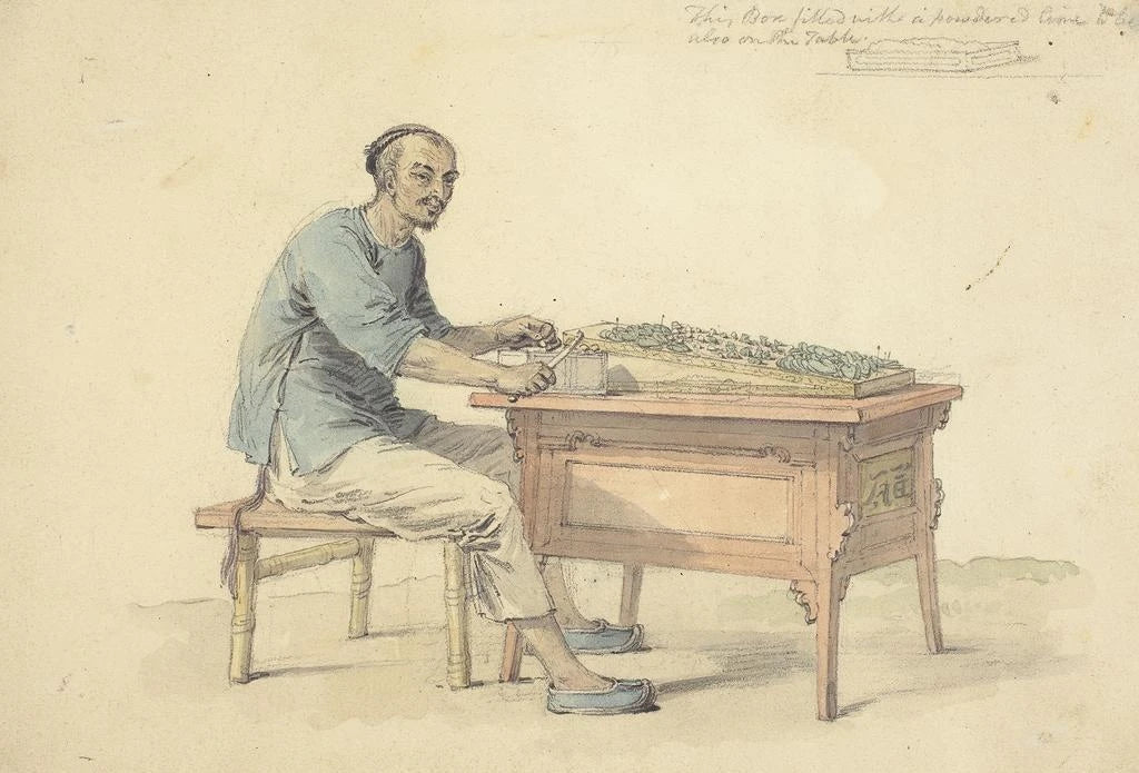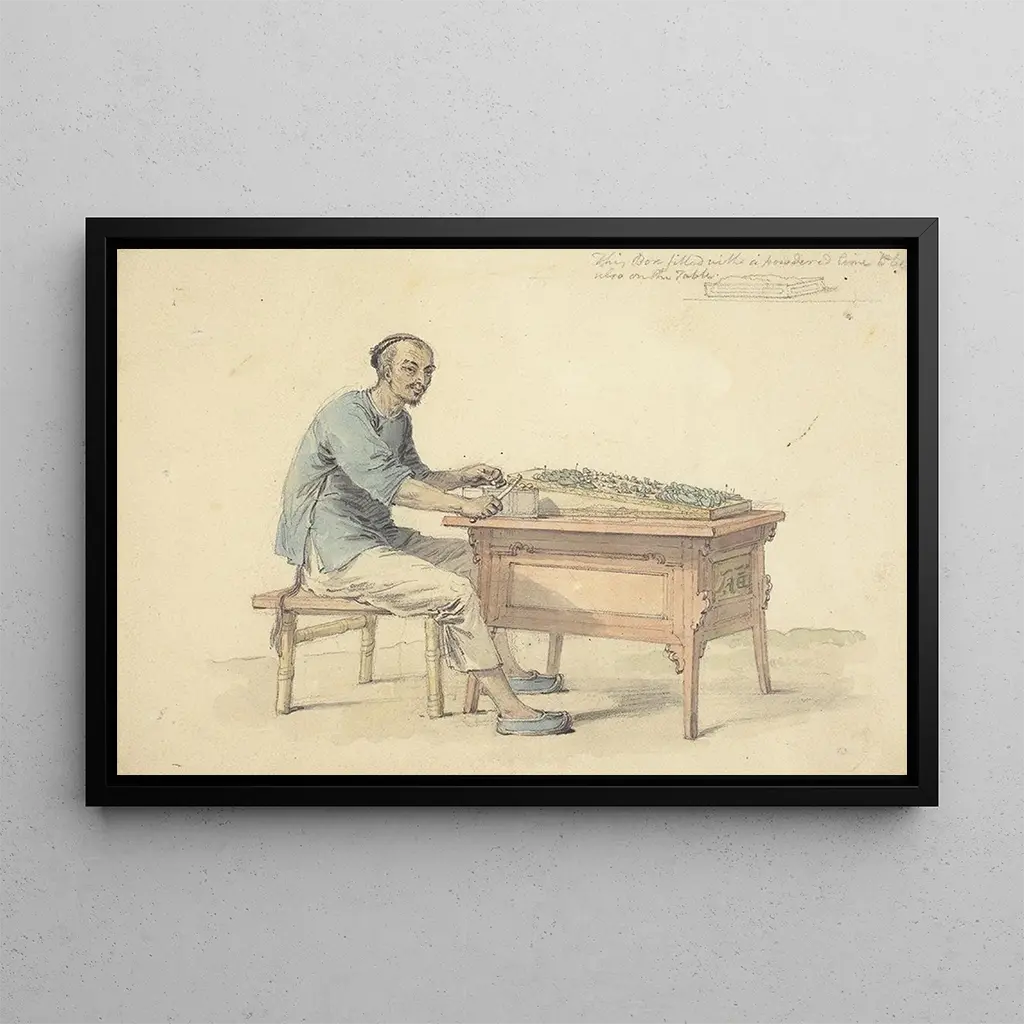 Kunsttrykket af maleriet "En landmand fra Kina, der sælger betel" er et ideelt dekorativt stykke til at berige dit hjem, uanset om det er i en stue, et kontor eller et soveværelse. Dets trykkvalitet sikrer en bemærkelsesværdig trofasthed over for farver og detaljer i det originale værk, hvilket tilføjer et strejf af eksotisme og ægthed til din indretning. Dette kunsttryk, med sin ubestridelige æstetiske appel, bliver et centralt punkt, der vækker nysgerrighed og beundring, samtidig med at det inviterer til refleksion over kinesiske traditioner og kultur.