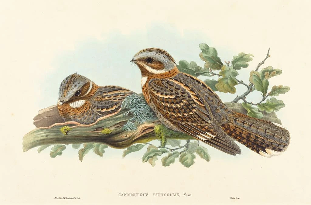 John Gould, berømt ornitolog og illustratør fra det 19. århundrede, spillede en afgørende rolle i dokumentationen af fuglearter over hele verden. Hans arbejde, ofte betragtet som en fusion mellem videnskab og kunst, har gjort det muligt at fremvise den rige fuglefauna i mange regioner. Gould rejste til fjerne egne, inspireret af mangfoldigheden af de fugle, han mødte. Kunsttrykket Engoulevent med rød hals er et perfekt eksempel på hans omhyggelige tilgang og hans engagement i præcis gengivelse af faunaen, hvilket markerer hans aftryk i historien om naturalistisk kunst.