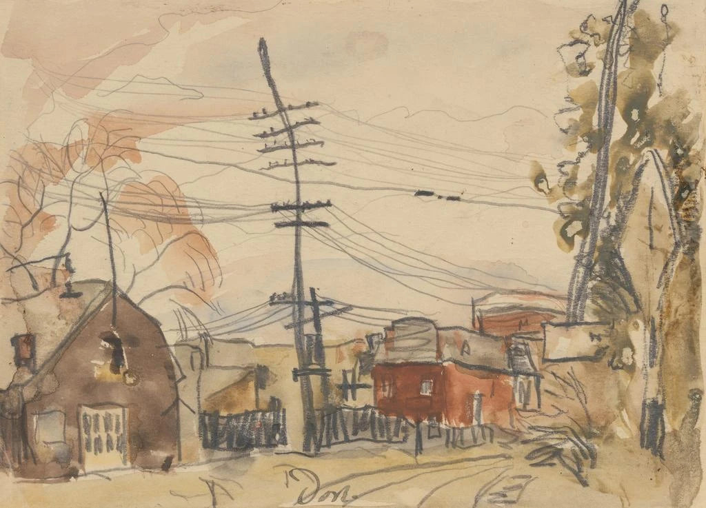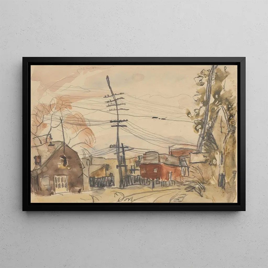 I "Chemin de fer de Fall Brook" fanger Arthur Dove den vilde skønhed i det amerikanske landskab gennem en dynamisk og farverig komposition. De jordnære nuancer og grønne toner fremkalder en fredelig atmosfære, mens de bølgende jernbanespor synes at væve sig ind i den omkringliggende natur. Doves teknik, der blander abstraktion og repræsentation, skaber en fornemmelse af bevægelse, der inviterer betragteren til at føle stedets vitalitet. Dette maleri, både poetisk og stemningsfuldt, transporterer os til en verden, hvor harmoni mellem menneske og natur er tydelig.