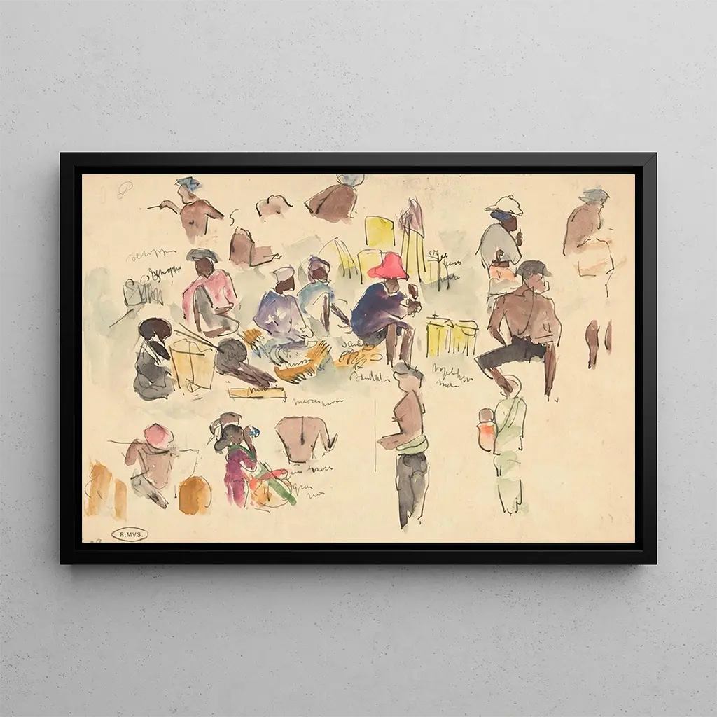 Reproduktionen af "Figures Indigènes" er et dekorativt stykke, der vil tilføre et strejf af autenticitet og varme til dit hjem, uanset om det er i en stue, et kontor eller et soveværelse. Dets trykkvalitet sikrer en trofast gengivelse af farver og detaljer i det originale værk, hvilket gør det muligt at nyde den visuelle rigdom fuldt ud. Ved at vælge dette kunsttryk, vælger du et værk, der ikke blot forskønner dit rum, men også fortæller en historie, der vækker nysgerrighed og beundring hos dine gæster. Dette kunsttryk er en ægte æstetisk fordel, der kan forvandle enhver væg til et åbent vindue mod andre kulturer.