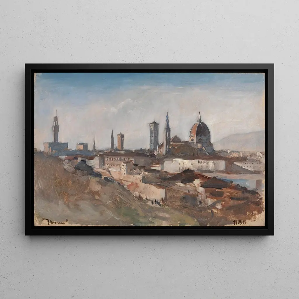 "Florence", et ikonisk kunsttryk af Hercules Brabazon Brabazon, indfanger selve essensen af den italienske by, berømt for sin arkitektur og kunstneriske rigdom. De livlige nuancer og lyslege fremkalder magien i de florentinske gader, mens de arkitektoniske detaljer er gengivet med bemærkelsesværdig præcision. Den dynamiske komposition, hvor himlen smelter sammen med bygningernes silhuetter, transporterer betragteren til hjertet af denne historiske metropol. Hvert element i lærredet synes at vibrere af en egen livskraft, hvilket inviterer til at udforske Florences vidundere gennem kunstnerens blik.