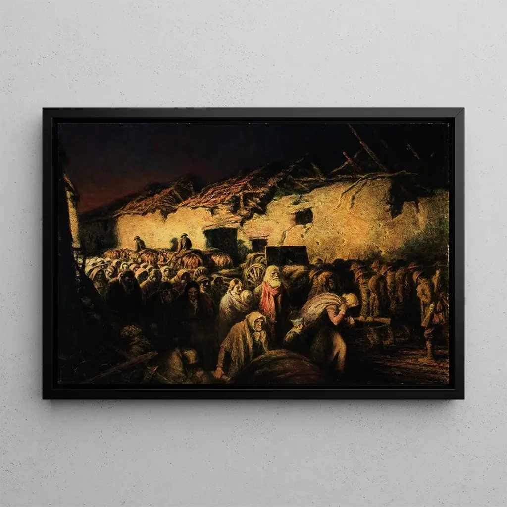 Les Réfugiés : et en stille, uudtrykt råb af fortvivlelse I dette rørende værk fanger Kerr Eby essensen af menneskelig lidelse gennem en følelsesladet komposition. Flygtningefigurerne, med ansigter præget af angst, træder frem mod en mørk baggrund, hvilket understreger alvoren af deres situation. De jordfarvede nuancer og gråtonerne skaber en atmosfære af ødelæggelse, mens de udtryksfulde træk hos figurerne vidner om dyb empati. Den træsnitsteknik, Eby anvender, giver dette kunsttryk en unik tekstur, der forstærker den visuelle og følelsesmæssige effekt af scenen. Hvert eneste detalje, hver skygge, synes at fortælle en historie om tab og håbets søgen. Kerr Eby : en vidne til sin tid Kerr Eby, canadisk kunstner fra begyndelsen af det 20. århundrede, er kendt for sine værker, der behandler sociale og politiske temaer. Påvirket af begivenhederne i sin tid, herunder krige og humanitære kriser, har Eby formået at give en stemme til de undertrykte gennem sit kunst. Hans karriere, præget af en dyb forpligtelse til uretfærdigheder, har ført ham til at udforske emner som immigration og menneskelig lidelse. Som medlem af Society of Canadian Artists har han bidraget til at berige det kunstneriske landskab i sit land, samtidig med at han har efterladt en varig arv gennem sine rørende værker. En dekorativ tilføjelse med mange fordele Kunsttrykket af "Les Réfugiés" er et dekorativt stykke, der uden tvivl vil tiltrække opmærksomhed i ethvert rum, hvad enten det er en stue, et kontor eller et soveværelse. Dets trykkvalitet og trofasthed mod det originale værk sikrer en berigende visuel oplevelse. Ved at integrere dette maleri i din indretning, bringer du ikke blot et kunstværk ind, men også en samtale om dybe og universelle temaer. Det æstetiske tiltrækningskraft ved dette lærred ligger i dets evne til at vække følelser og invitere til refleksion, hvilket gør dette kunsttryk til et ideelt valg for dem, der værdsætter engageret kunst.