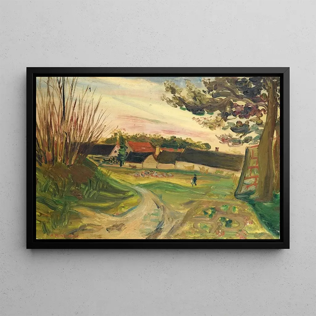 Abraham Mintchine, en russiskfødt maler, formåede at gøre sig gældende på den kunstneriske scene i begyndelsen af det 20. århundrede. Hans stil, påvirket af post-impressionismen, karakteriseres ved en følsom tilgang til landskaber og dagligdags scener. Mintchine har ofte udforsket temaer om natur og landlighed, med det formål at udtrykke skønheden i enkle øjeblikke. Promeneurs foran en gård illustrerer perfekt denne søgen efter ægthed og forbindelse med den naturlige verden. Hans værk afspejler en tid, hvor kunsten frigjorde sig fra konventionerne, samtidig med at den var dybt forankret i æstetiske værdier.
