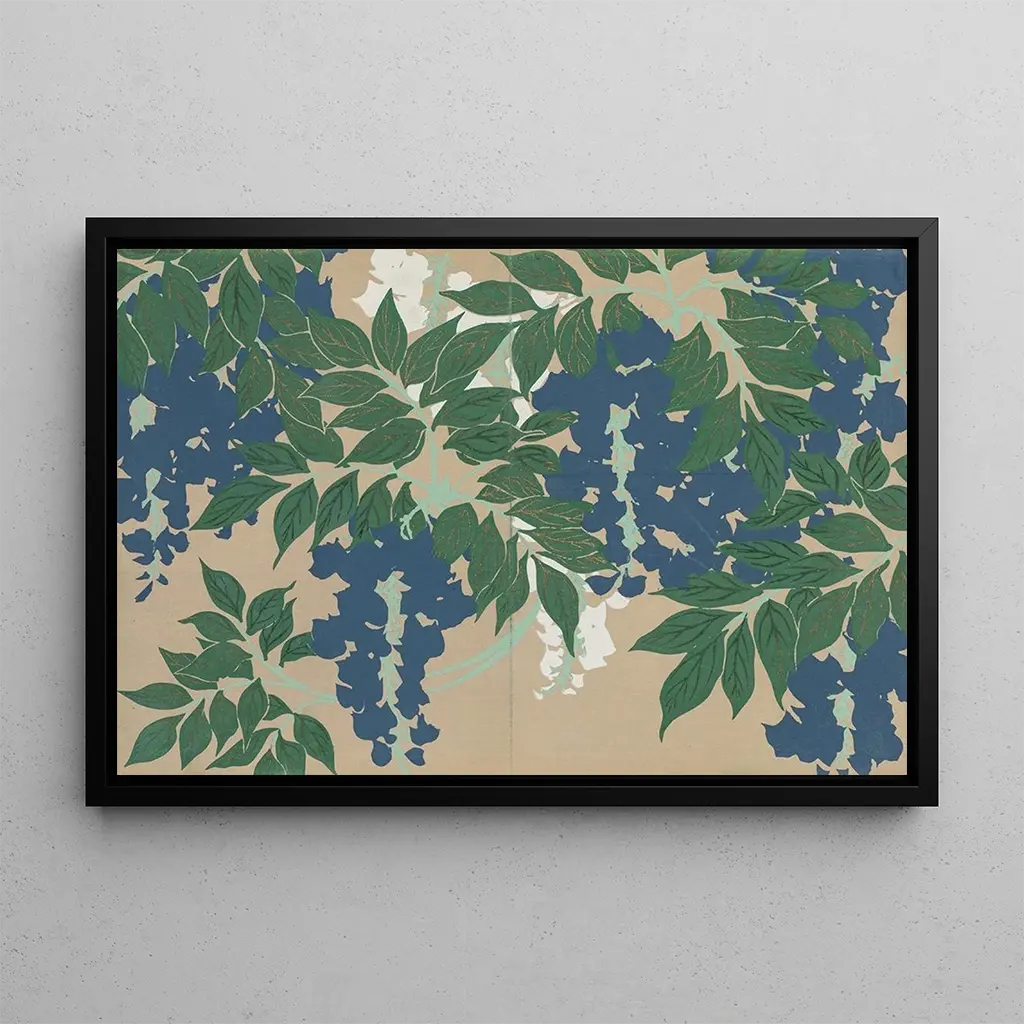 Kunsttrykket Glycine Fuji af Kamisaka Sekka er et værk, der fremkalder lethed og den flygtige skønhed af blomster. På dette lærred snor klaser af glycine sig yndefuldt, hvilket skaber et fængslende visuelt skue. Pastelfarver, fra delikat lilla til ren hvid, blander sig harmonisk, mens akvarellens teknik giver en blidhed til hele værket. Atmosfæren, der udspringer af dette kunsttryk, er både rolig og poetisk, og inviterer betragteren til at dykke ned i en blomsterverden, hvor tiden synes at stå stille.