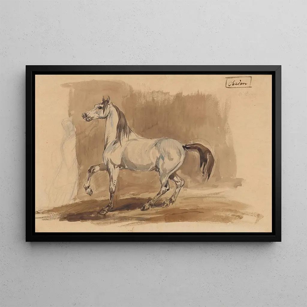 Cheval arabe gris Obeian : la majesté d'un noble destrier Cheval arabe gris Obeian, œuvre de Piotr Michałowski, capture la beauté et la puissance d'un cheval majestueux. La toile dépeint un animal au pelage argenté, dont les détails minutieux révèlent la finesse de sa musculature et l'élégance de sa posture. Michałowski, en utilisant des techniques de peinture réalistes, parvient à transmettre une atmosphère de force et de grâce. Le fond sobre met en valeur le sujet principal, créant un contraste qui accentue la présence imposante de ce cheval. Cette œuvre est une célébration de la beauté animale, invitant le spectateur à apprécier la noblesse de cet équidé. Piotr Michałowski : un maître du réalisme animalier Piotr Michałowski, peintre polonais du XIXe siècle, est reconnu pour ses représentations réalistes de chevaux et de scènes de la vie rurale. Formé à l'Académie des beaux-arts de Varsovie, il s'inspire des traditions artistiques européennes tout en intégrant des éléments de son héritage culturel. Sa passion pour les chevaux, qu'il considère comme des symboles de liberté et de beauté, transparaît dans chacune de ses œuvres. Michałowski a su capturer l'essence même de ces animaux, faisant de Cheval arabe gris Obeian une pièce emblématique de son travail, qui témoigne de son talent et de son engagement envers le réalisme. Une acquisition décorative aux multiples atouts La kunsttryk de Cheval arabe gris Obeian est un choix décoratif qui apportera une touche d'élégance à votre intérieur. Que ce soit dans un bureau, un salon ou une chambre, cette toile s'intègre parfaitement dans divers styles de décoration, ajoutant une note de sophistication. La qualité de la kunsttryk assure une fidélité aux détails de l'œuvre originale, permettant d'apprécier pleinement la beauté de ce cheval. En choisissant cette kunsttryk, vous offrez à votre espace un élément d'art qui évoque à la fois la puissance et la grâce, tout en enrichissant votre environnement visuel de manière significative.