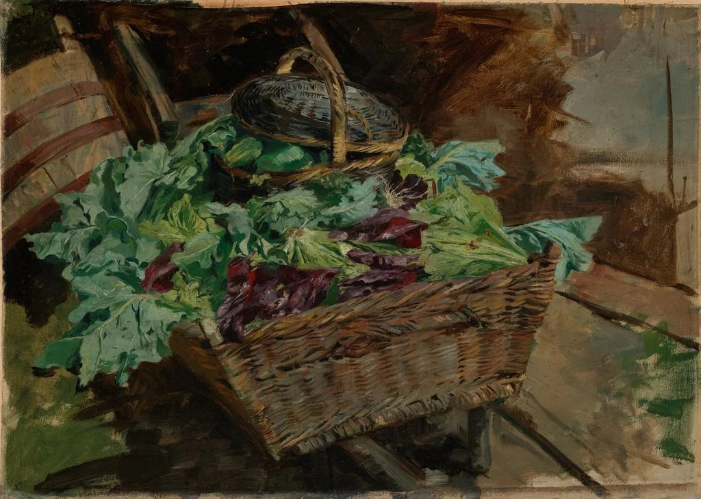 Kunsttrykket af "Panier de légumes" af Fritz Boehle fremkalder en livlig fejring af naturen og dens goder. I dette værk virker grøntsagerne, arrangeret omhyggeligt, næsten håndgribelige takket være maleteknikken, der fremhæver teksturer og de levende farver. De dybe grønne, skarpe røde og gyldne gule farver mødes harmonisk, hvilket skaber en både rig og afbalanceret komposition. Atmosfæren, der udspringer af dette lærred, er præget af en glædesfyldt overflod, der inviterer betragteren til at værdsætte den enkle skønhed i jordens produkter.
