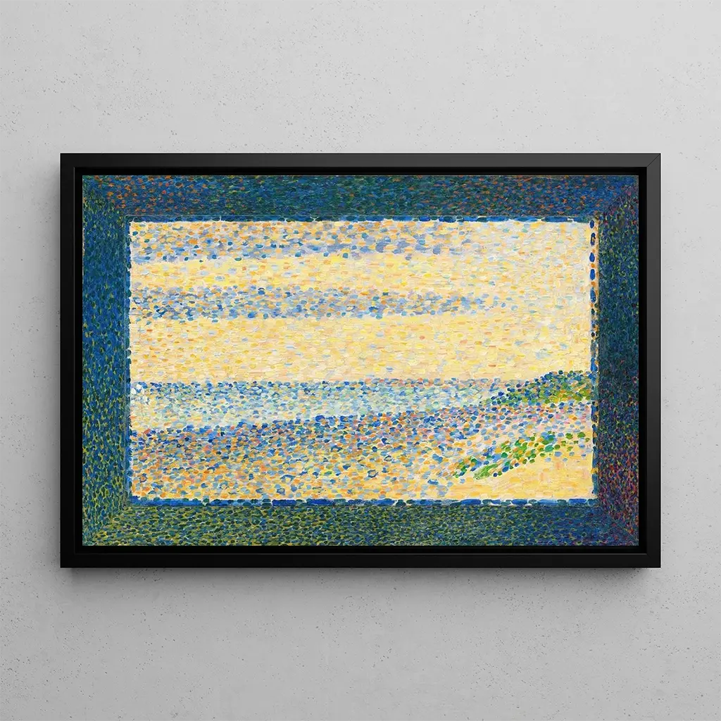 Paysage marin Gravelines : en symfoni af maritime farver Maleriet Paysage marin Gravelines af Georges Seurat er et fængslende værk, der fremkalder roen ved de franske kyster. Gennem punktvise farvetouch, formår Seurat at skabe en fredelig atmosfære, hvor havet og himlen mødes i en gradient af blå og grøn. Kompositionen, der er velafbalanceret, inviterer til eftertanke, mens figurerne i baggrunden tilføjer en menneskelig dimension til dette naturlige landskab. Dette maleri, både enkelt og komplekst, vidner om Seurats tekniske kunnen og hans evne til at fange lys og følelser. Georges Seurat : pioneren inden for pointillisme Georges Seurat, født i 1859, er en ikonisk kunstner inden for den neo-impressionistiske bevægelse. Hans innovative tilgang til punktvis maleri, hvor små farvetouch anvendes side om side, revolutionerede malerkunsten i hans tid. Seurat blev påvirket af videnskabelige teorier om farve og lys, hvilket gjorde ham i stand til at skabe værker med bemærkelsesværdig visuel dybde. Paysage marin Gravelines, udført i 1890, illustrerer perfekt hans karakteristiske stil og hans interesse for maritime landskaber, et emne der fascinerede ham gennem hele hans karriere. En dekorativ tilføjelse med mange fordele Reproduktionen af kunsttrykket Paysage marin Gravelines er et perfekt dekorativt valg for dem, der ønsker at tilføre et kunstnerisk præg til deres hjem. Uanset om det er i en stue, et kontor eller et soveværelse, vil dette lærred lyse dit rum op med sin beroligende farvepalette. Kvaliteten af trykket sikrer en bemærkelsesværdig trofasthed til detaljerne i det originale værk, hvilket giver mulighed for at nyde dets æstetiske appel. Ved at integrere dette kunsttryk i din indretning skaber du et inspirerende miljø, der fejrer naturens skønhed og Seurats kunst.