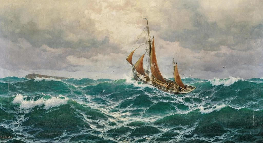 Max Jensen, en dansk kunstner fra det 19. århundrede, er kendt for sine maritime kunsttryk, der fanger naturens rå skønhed. Påvirket af den romantiske bevægelse fokuserer han på at skildre de naturlige elementer og søger at formidle følelser gennem sine værker. Jensen har formået at gøre sig gældende i kunstverdenen takket være sin evne til at lege med lys og farver, hvilket skaber unikke atmosfærer. Hans arbejde er præget af en tid, hvor nordisk kunst søgte at etablere sig på den europæiske scene, og han forbliver en vigtig figur i denne kunstretning.