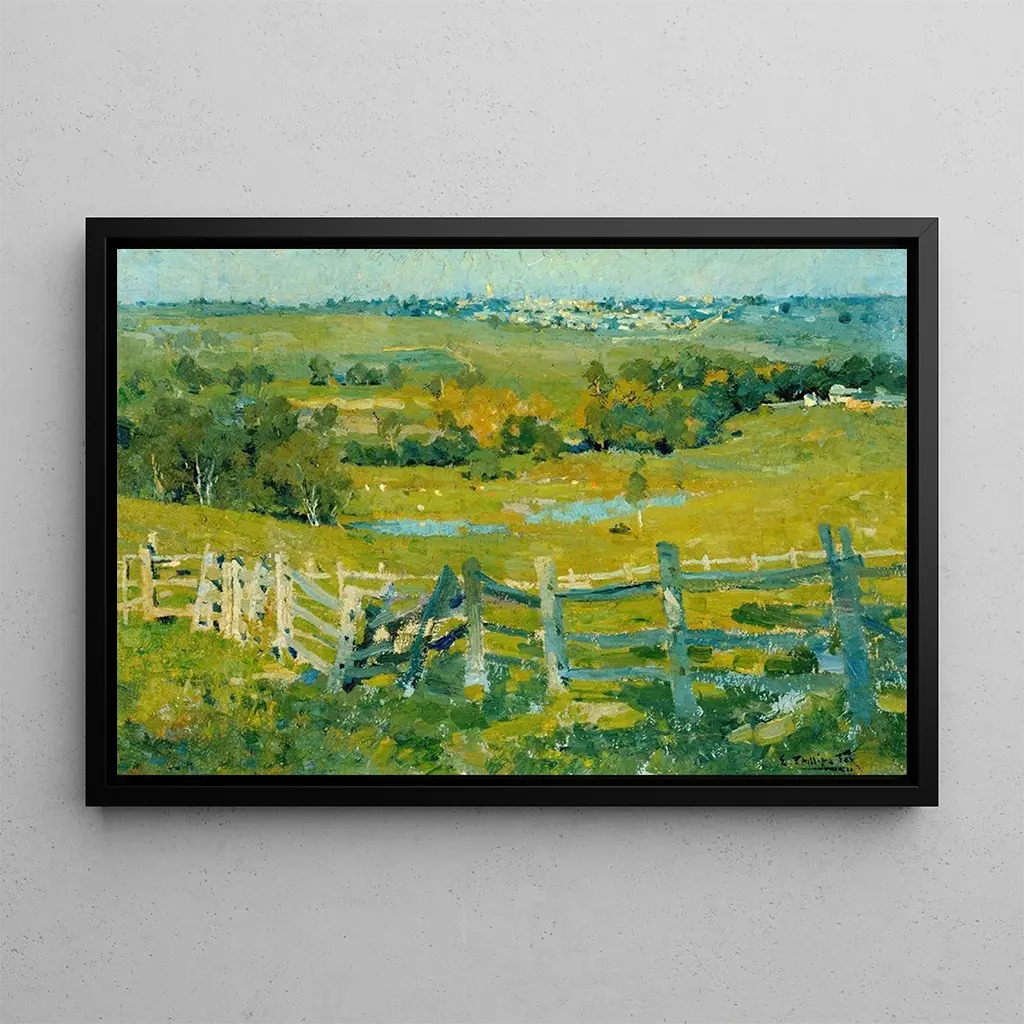 E. Phillips Fox, en ikonisk figur inden for australsk impressionisme, formåede at fange essensen af lys og landskaber. Født i 1866, blev han påvirket af de store europæiske mestre, især Monet og Renoir, under sine ophold i Frankrig. Hans værk skiller sig ud med en rig palet og en følsomhed over for lys, karakteristisk for impressionistperioden. Fox spillede en afgørende rolle i introduktionen af denne stil i Australien og efterlader en varig arv, der fortsat inspirerer nutidens kunstnere. "Heidelberg" er et perfekt eksempel på hans talent og engagement for den naturlige skønhed.