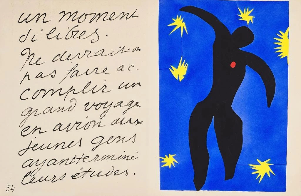 "Icare", et ikonisk kunsttryk af Henri Matisse, fremkalder legenden om den mytologiske figur, der, ved at stige mod himlen, udfordrede de menneskelige grænser. Den dynamiske komposition og de livlige farver, typiske for Matisse's stil, skaber en atmosfære, der er både glædesfyldt og tragisk. De flydende former og de dristige linjer illustrerer bevægelse og Icare's stræben efter frihed. Dette kunsttryk, gennem sin udtryksfuldhed, fanger selve essensen af menneskeheden, der svinger mellem drøm og virkelighed, og inviterer betragteren til at reflektere over konsekvenserne af ambition.