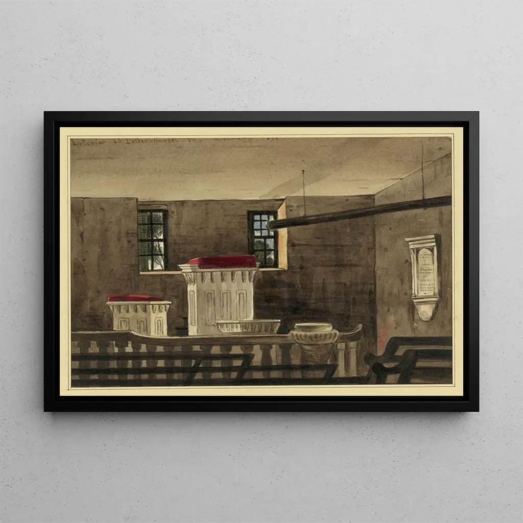 Kunsttrykket af maleriet "Indre af Saint-Pierre-kirken" er et ideelt dekorativt stykke til at berige dit opholdsrum, kontor eller soveværelse. Dets trykkvalitet og trofasthed mod de originale farver gør det til et klogt valg for dem, der ønsker at tilføre elegance til deres indretning. Det æstetiske tiltrækningskraft ved dette lærred ligger i dets evne til at fremkalde dybe følelser, samtidig med at det harmonisk integreres i forskellige dekorationsstile. Ved at vælge dette kunsttryk vælger du en beroligende og inspirerende atmosfære, der fremmer refleksion og eftertanke.