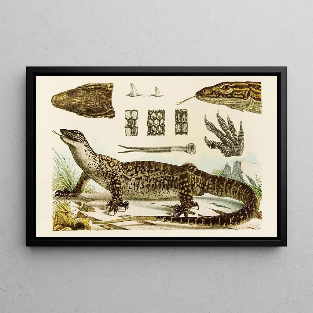 Kunsttrykket af "Reptiler I" er et ideelt dekorativt stykke for naturelskere og kunstentusiaster. Uanset om det er i stuen, på et kontor eller i et værelse, vil dette lærred tilføre elegance og nysgerrighed til dit hjem. Dets trykkvalitet sikrer en trofast gengivelse af farver og detaljer fra det originale værk, samtidig med at det har en uomtvistelig æstetisk appel. Ved at vælge dette lærred vælger du en dekoration, der stimulerer samtalen og inviterer til udforskning af dyrenes verden, samtidig med at det beriger dit opholdsrum.