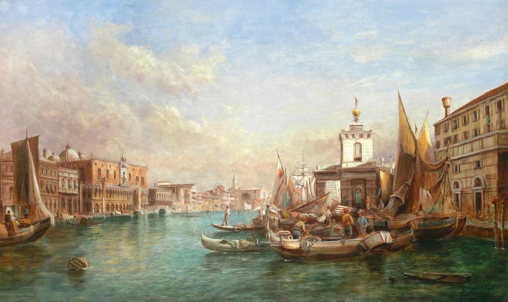Alfred Pollentine, aktiv i anden halvdel af det 19. århundrede, er kendt for sine venetianske landskaber og genre-scener. Påvirket af den præraphaelitiske bevægelse, tilhører han en kunstnerisk tradition, der værdsætter naturen og lyset. Hans værker, ofte præget af romantik, vidner om en tid, hvor England og Italien var i fuld kulturel udveksling. Pollentine har formået at fange essensen af Venedig, hvilket gør hans malerier til åbne vinduer mod en vibrerende og farverig virkelighed, samtidig med at de bevarer et strejf af poesi.