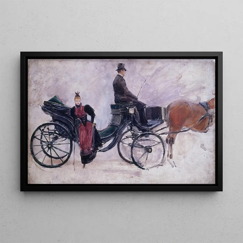 La kunsttryk af La Victoria, udført af Jean Béraud, indfanger den livlige essens af det parisiske liv i slutningen af det 19. århundrede. Dette lærred, rigt på farver og bevægelse, skildrer en livlig café-scene, hvor de elegant klædte personer synes at blive levende under den gyldne lys effekt. De fine detaljer i kostumerne og den indbydende atmosfære, der udspringer herfra, vidner om Bérauds talent for at indfange hverdagens øjeblikke. Den dynamiske komposition af kunstværket, med sine flydende linjer og farvestrål, inviterer betragteren til at dykke ned i den franske hovedstads livlige stemning.