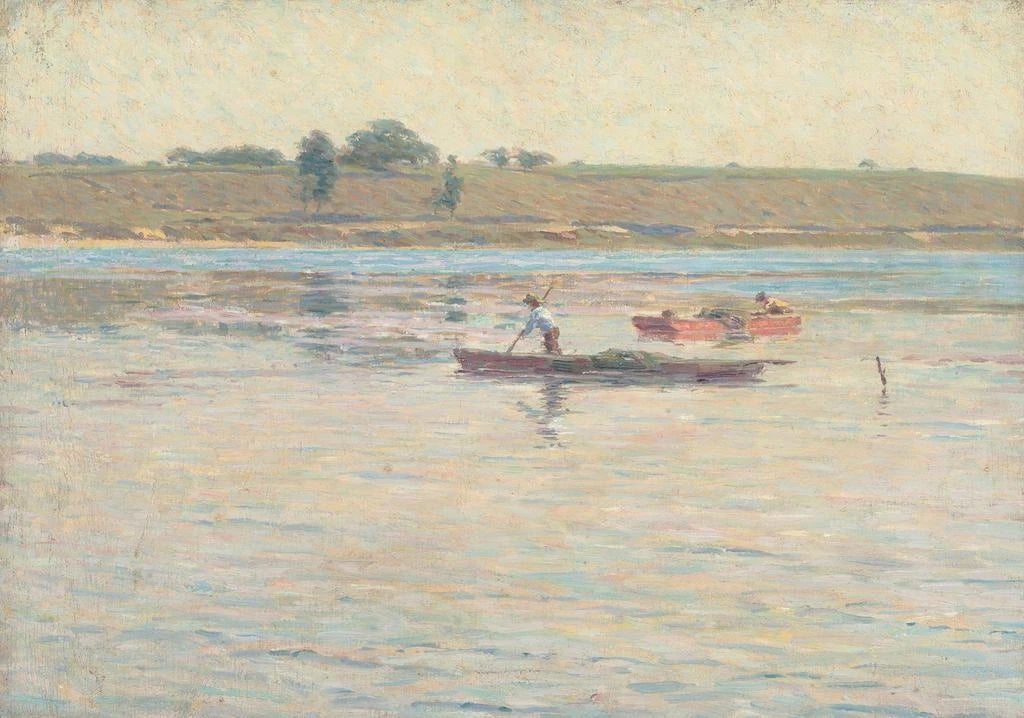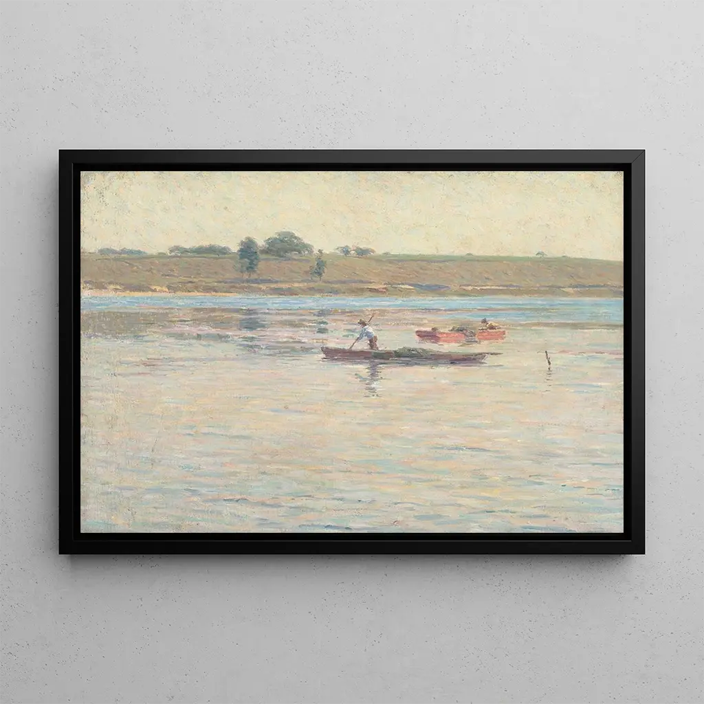 Kunsttrykket "Paysage med fiskere" er et fængslende værk, der illustrerer den fredelige sameksistens mellem menneske og dets omgivelser. I denne idylliske scene er fiskere travlt beskæftiget ved bredden af en vandløb, mens den omkringliggende natur blomstrer i livlige farver. De bløde nuancer på lærredet, der blander frodige grønne og beroligende blå, skaber en rolig og eftertænksom atmosfære. Den anvendte teknik, kendetegnet ved flydende penselstrøg, giver en fornemmelse af bevægelse, som om man kan høre vandets hvislen og fuglenes sang. Dette kunsttryk inviterer til en flugt til idylliske landskaber, langt fra hverdagens tumult.