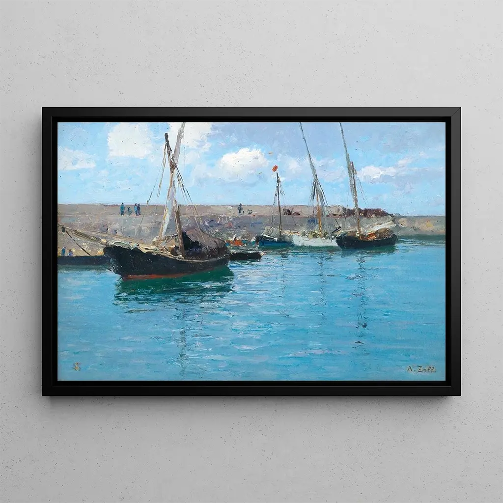Alfred Zoff, maler østrigsk aktiv i begyndelsen af det 20. århundrede, er kendt for sine landskaber og genre-scener. Påvirket af impressionismen, har han udviklet en unik stil, der fremhæver lyset og farven. Zoff har ofte udforsket floder og søer, hvilket vidner om hans tilknytning til naturen og udendørslivet. Hans værker, selvom de er mindre kendte end hans samtidiges, har sat deres præg på den østrigske kunsthistorie gennem deres følsomhed og evne til at fange livets øjeblikke. "Le débarcadère à Krems" illustrerer perfekt hans kunstneriske tilgang, der kombinerer teknik og følelser.