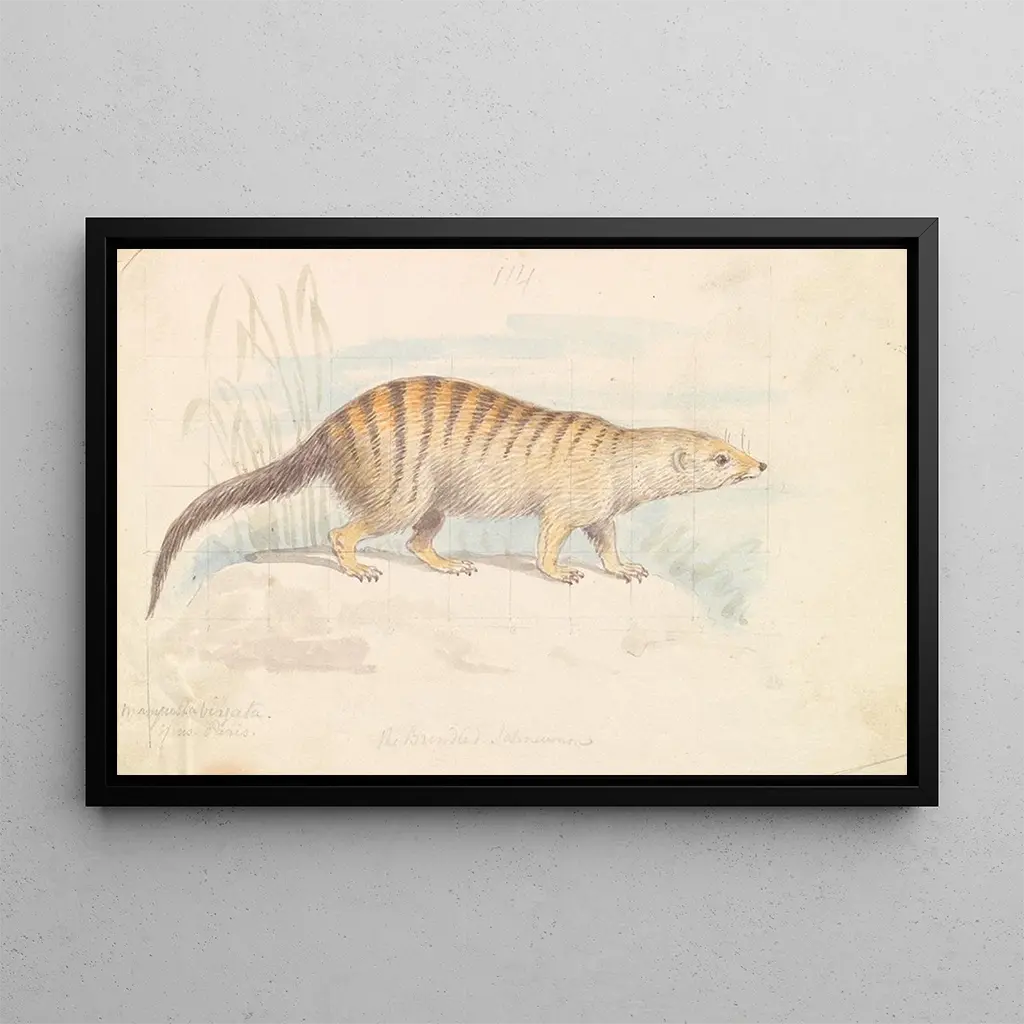 Mangouste rayée : et kig på den fascinerende fauna Kunsttrykket af Charles Hamilton Smith, der forestiller den stribede mangouste, fanger den livlige og nysgerrige ånd af dette ikoniske dyr. De jordfarvede nuancer og de præcise detaljer i pelsen fremkalder et vildt habitat, hvor mangoustien bevæger sig smidigt. Værket, skabt med en omhyggelig illustreringsteknik, tilbyder en levende og dynamisk atmosfære, der inviterer seeren til at udforske dyreverdenen. Hvert penselstrøg synes at fortælle en historie, der afslører skønheden og kompleksiteten af det vilde liv. Charles Hamilton Smith : en opdagelsesrejsende i naturen Charles Hamilton Smith, aktiv i det 19. århundrede, var en britisk kunstner og naturalist, hvis værker har bidraget til dokumentationen af den globale fauna. Påvirket af sine rejser og møder med eksotiske arter, formåede han at forene kunst og videnskab. Hans passion for zoologisk illustration har gjort ham i stand til at fange øjeblikke af dyreliv med bemærkelsesværdig præcision. Den stribede mangouste, ikonisk for hans repertoire, vidner om hans engagement i at repræsentere naturen autentisk og æstetisk, hvilket gør ham til en vigtig figur inden for naturalistisk illustration. En dekorativ erhvervelse med mange fordele At vælge dette kunsttryk af den stribede mangouste er at tilføje et unikt stykke til din indretning. Uanset om det er i en stue, et kontor eller et soveværelse, vil dette billede tilføre et strejf af eksotisme og nysgerrighed til dit rum. Kvaliteten af udskriften sikrer en trofast gengivelse af farver og detaljer, hvilket gør det muligt for hver observatør at værdsætte skønheden i værket. Med sin æstetiske appel og sit karakteristiske præg integreres dette lærred perfekt i forskellige indretningstyper, hvilket tiltaler både fauna-entusiaster og kunstelskere.
