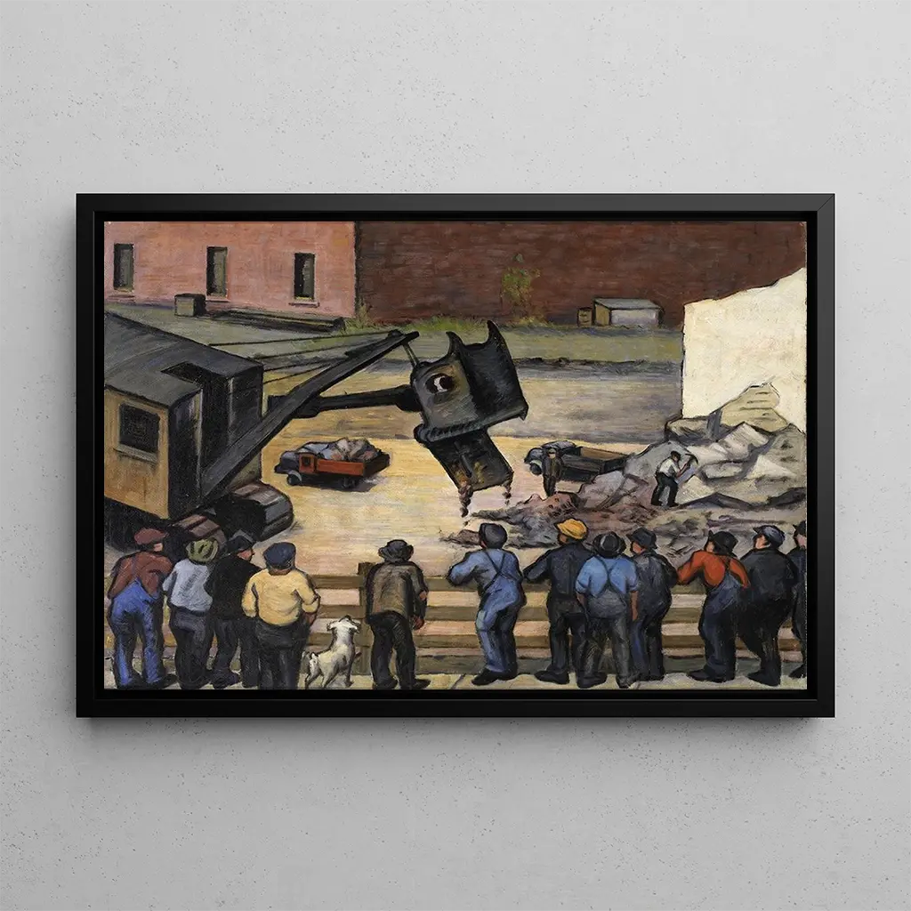 Kunstneren bag "Maskinuhyre uden titel" er ukendt, men værket er en del af en rig historisk kontekst, præget af industrialiseringens fremmarch. Denne bevægelse, der dybt forandrede samfundene i det 19. århundrede, inspirerede mange kunstnere til at udforske temaer om modernitet og teknologi. Indflydelser fra surrealismen og futurismen mærkes i dette værk, hvor fantasien tager over for virkeligheden. Kunstnere fra denne periode søgte at fange spændingerne mellem innovation og tradition, og dette kunsttryk er et perfekt eksempel, der vidner om en tid, hvor mennesket begyndte at stille spørgsmål ved sit forhold til maskinen.