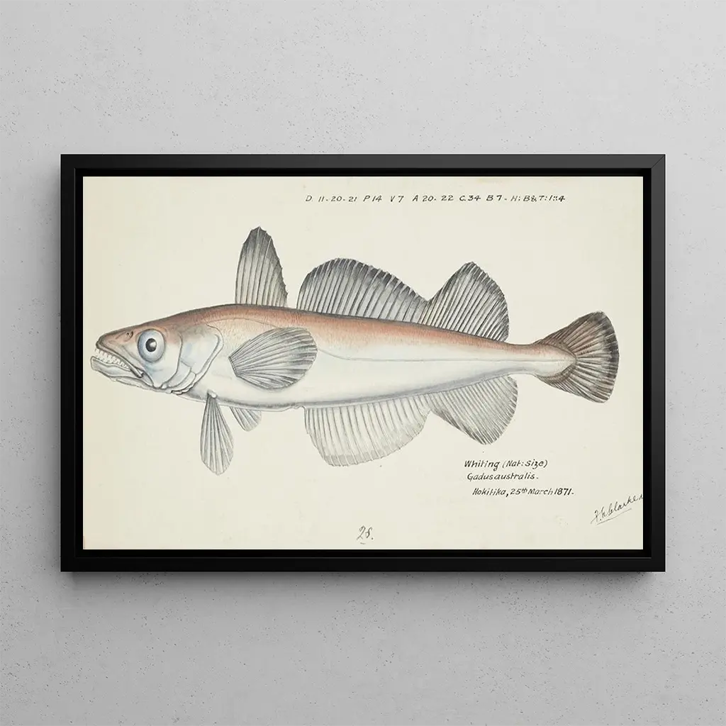 Kunsttrykket af Merluccius australis, merlu de Nouvelle-Zélande, er et dekorativt valg, der vil tiltale naturelskere og haventusiaster. Uanset om det er i en stue, et kontor eller et køkken, tilføjer dette lærred et strejf af friskhed og elegance til din indretning. Kvaliteten af trykket sikrer en bemærkelsesværdig trofasthed til detaljerne og farverne i det originale værk, hvilket gør det muligt fuldt ud at værdsætte skønheden i denne fisk. Ved at integrere dette værk i dit rum skaber du en beroligende og inspirerende atmosfære, samtidig med at du fejrer den marine livs rigdom.