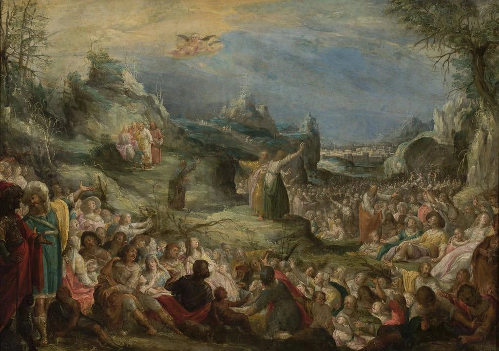 Le "Miracle de la multiplication des pains" est une œuvre qui dépeint un moment emblématique du Nouveau Testament, où Jésus nourrit une foule affamée avec une simple offrande de pains et de poissons. La composition est riche en détails, avec des personnages aux expressions variées qui illustrent la surprise et l'émerveillement face à ce miracle. Les couleurs lumineuses et les jeux d'ombre et de lumière créent une atmosphère à la fois spirituelle et chaleureuse, invitant le spectateur à ressentir la puissance de cet acte de générosité. La scène est empreinte d'une profonde humanité, où la foi et le partage transcendent les limites matérielles.