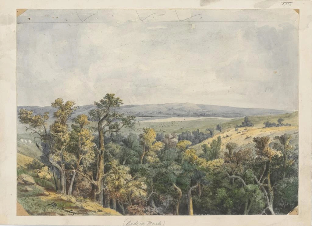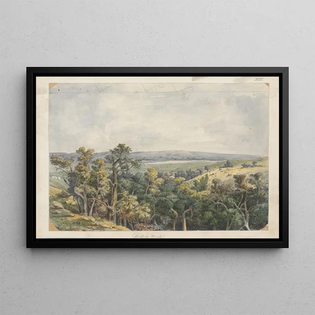Reproduktion af "Butte de Morale" af John Mix Stanley tager os med på en fortryllende rejse gennem et landskab, hvor naturens skønhed blomstrer i en palette af livlige farver. Nuancer af grøn, blå og jordfarver flettes sammen for at skabe en atmosfære, der både er fredelig og dynamisk. Kompositionen, rig på detaljer, inviterer seeren til at udforske hvert hjørne af maleriet og afslører elementer af dyreliv og flora, der antyder en dyb forbindelse til jorden. Anvendelsen af lys og skygge fremhæver scenens dybde, hvilket gør den visuelle oplevelse endnu mere immersiv.