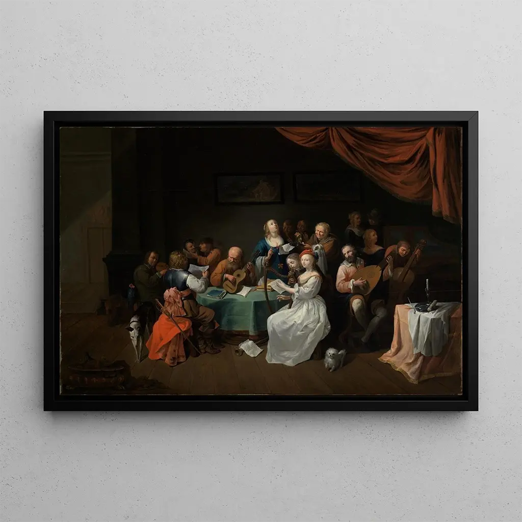 Kunsttrykket af "Musikunderholdning" tager os med ind i en verden, hvor musik og kunst mødes med glans. De livlige farver og de dynamiske former på lærredet fremkalder en festlig atmosfære, fuld af liv og energi. Personerne, klædt i prangende kostumer, synes at danse til rytmen af melodierne, hvilket skaber en levende scene, der fanger opmærksomheden. Hvert detalje, fra musikinstrumenter til de glade udtryk hos musikerne, bidrager til en feststemning, der inviterer seeren til at føle magien i musikken gennem det visuelle kunstværk.