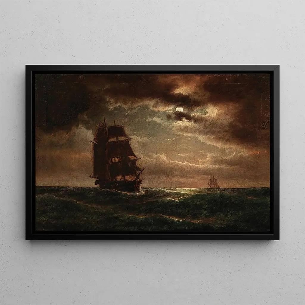Kunsttryk af Nuit de Lune med Tre-master fremkalder en maritim scene fyldt med mystik og poesi. Månen belyser forsigtigt sejlene på de tre-master, hvilket skaber glitrende reflekser på bølgerne. De mørke nuancer i himlen blander sig med strejf af sølvlys, hvilket giver en slående kontrast, der fanger øjet. Anton Melbye, med sin beherskelse af lys og skygge, formår at fange essensen af en fredelig nat til søs, hvor ro og skønhed mødes. Dette kunsttryk inviterer til drømme, og transporterer betragteren til fjerne horisonter.