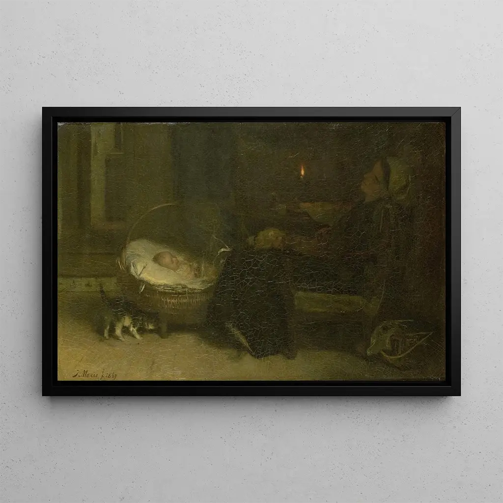 Kunsttrykket af Udsolgt Surveget Mor, værk af Jacob Maris, fremkalder en intim og følelsesladet scene, hvor en mors træthed blander sig med den betingelsesløse kærlighed, hun har til sit barn. De bløde farver og pastelnuancer skaber en varm atmosfære, mens det delikate lys fremhæver den mors fredelige træk. Maris' teknik, kendetegnet ved flydende penselstrøg, giver liv til denne rørende scene og inviterer betragteren til at føle dybden af dette øjeblik af blidhed.