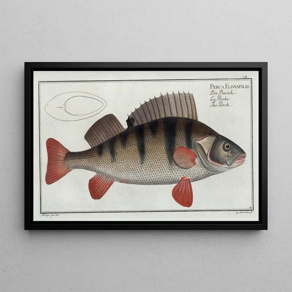 Perca fluviatilis La Perche : en fordybelse i den akvatiske verden Den kunsttryk af Perca fluviatilis, også kendt som La Perche, er et fængslende værk, der inviterer seeren til at dykke ned i den fascinerende fauna i vandmiljøet. Med strejf af grønt og gult fanger kunstneren den naturlige skønhed af denne ikoniske fisk. De omhyggelige detaljer i skæl og den flydende bevægelse fremkalder en følelse af liv og dynamik. Den anvendte teknik, sandsynligvis akvarel eller gravering, formår at gengive vandets gennemsigtighed og det reflekterede lys, hvilket skaber en rolig og kontemplativ atmosfære. Dette kunstværk inviterer til udforskning af de marine dybder og opdagelse af de skjulte vidundere under overfladen. Marcus Elieser Bloch : en pioner inden for ichthyologisk illustration Marcus Elieser Bloch, en naturforsker og illustratør fra det 18. århundrede, er anerkendt for sine væsentlige bidrag til studiet af fisk. Hans kunsttryk er en del af den naturlige videnskabsbevægelse, hvor observation og præcis gengivelse af arter var afgørende. Bloch rejste gennem Europa, inspireret af forskellige kulturer og kunstneriske teknikker, hvilket berigede hans unikke stil. Hans illustrationer, herunder kunsttrykket af La Perche, er ikke blot kunstværker, men også videnskabelige dokumenter, der har hjulpet med at katalogisere den akvatiske biodiversitet i hans tid. Hans arv består, og påvirker generationer af kunstnere og forskere. En dekorativ tilføjelse med mange fordele Kunsttrykket af Perca fluviatilis er et ideelt dekorativt element til forskellige rum, hvad enten det er i en stue, et kontor eller et soveværelse. Dets trykkvalitet og trofasthed mod detaljerne i det originale værk gør det til et attraktivt valg for kunst- og naturentusiaster. Hængende på væggen tilføjer dette lærred et strejf af elegance og ro, samtidig med at det fremkalder samtaler om skønheden i den akvatiske verden. Ved at integrere dette kunstværk i din indretning får du ikke blot et æstetisk element, men også et vindue til rigdommen i det marine liv.