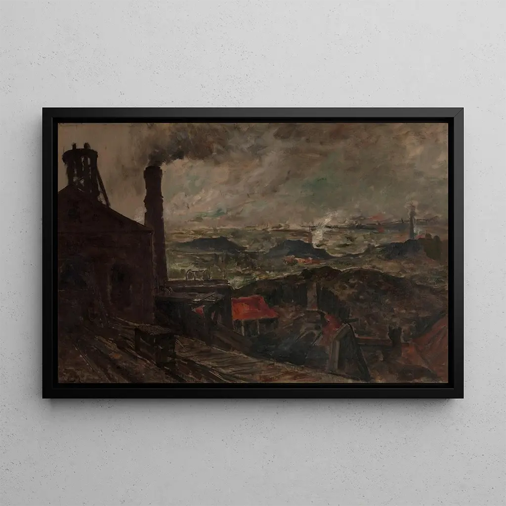Kunsttrykket af lærredet "Region minery" af Constantin Meunier tager os med ind i minerarbejdernes univers og fanger essensen af deres dagligdag. De mørke og jordfarvede nuancer dominerer, hvilket fremkalder råheden i minerimiljøet. Den dynamiske komposition, hvor menneskefigurer blander sig med industrielle landskaber, skaber en atmosfære, der både er tung og vibrerende. Meunier formår med sin oliemalingsteknik at formidle en håndgribelig følelse, der afslører arbejdernes værdighed samtidig med, at den understreger deres livs udfordringer.
