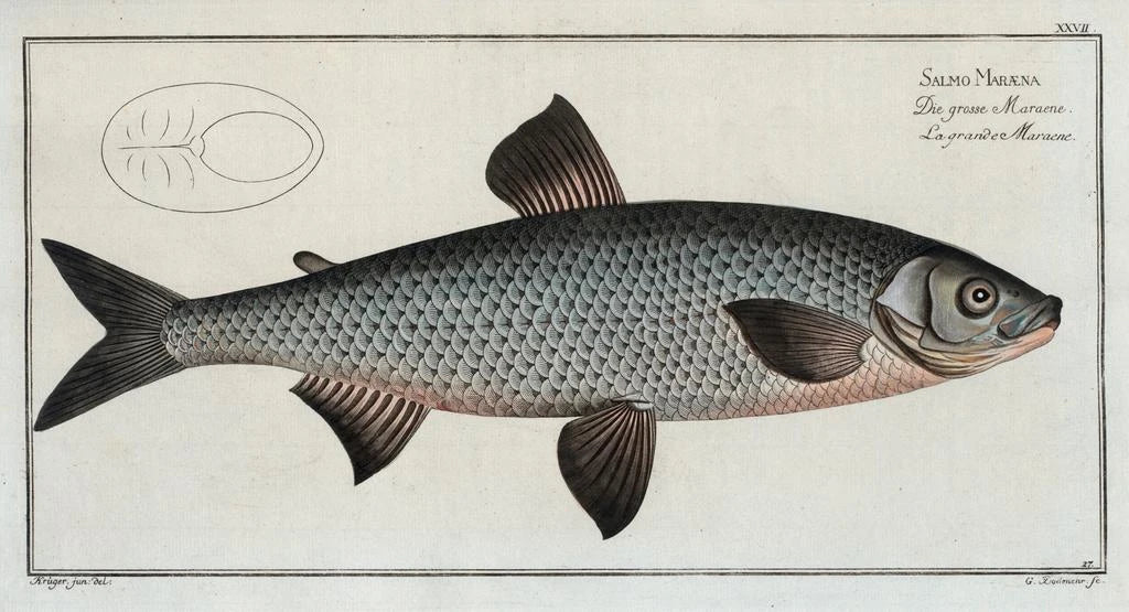 Marcus Elieser Bloch, naturforsker og kunstner fra det 18. århundrede, er berømt for sine illustrationer af fisk og andre marine skabninger. Hans værk, der forener videnskab og kunst, har spillet en afgørende rolle i dokumentationen af det akvatiske dyreliv i hans tid. Påvirket af de videnskabelige opdagelser i sin æra, formåede Bloch at fange skønheden og mangfoldigheden af marine arter med bemærkelsesværdig præcision. Hans bog "Naturgeschichte der ausländischen Fische" betragtes som en reference inden for ichthyologi. Takket være sit talent formåede han at vække interessen for marinbiologi og efterlader et varigt arv inden for zoologisk kunst.