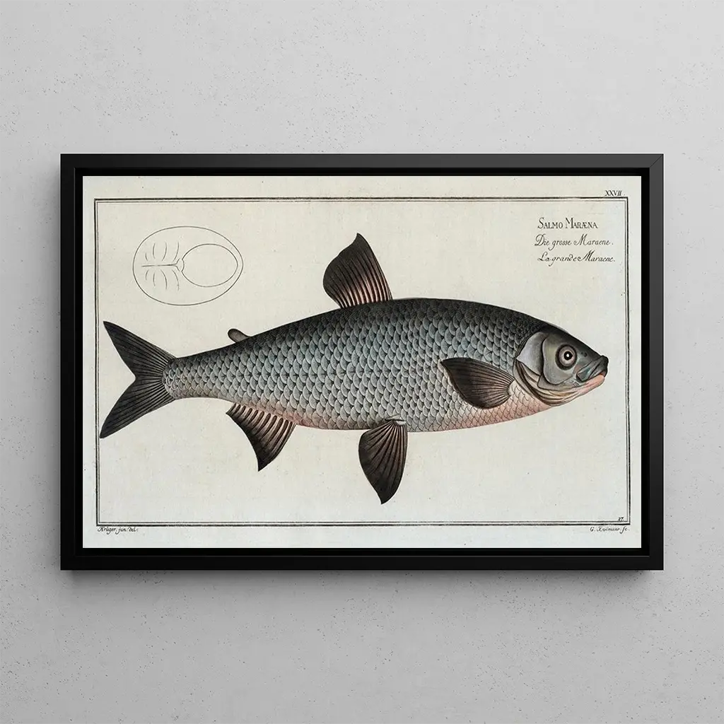 Kunsttrykket af "Salmo Marna Le Grand Marna" er et ideelt dekorativt stykke for naturelskere og dem, der elsker det akvatiske liv. Uanset om det er i et kontor, en stue eller et spisestue, vil dette lærred tilføre elegance og nysgerrighed til dit hjem. Kvaliteten af udskriften sikrer en enestående trofasthed til detaljerne og de livlige farver i det originale værk, hvilket giver mulighed for at nyde skønheden af dette illustration fuldt ud. Ved at vælge dette kunsttryk vælger du en dekoration, der kombinerer æstetik og passion for naturen, samtidig med at den hylder kunstneren Marcus Elieser Bloch.