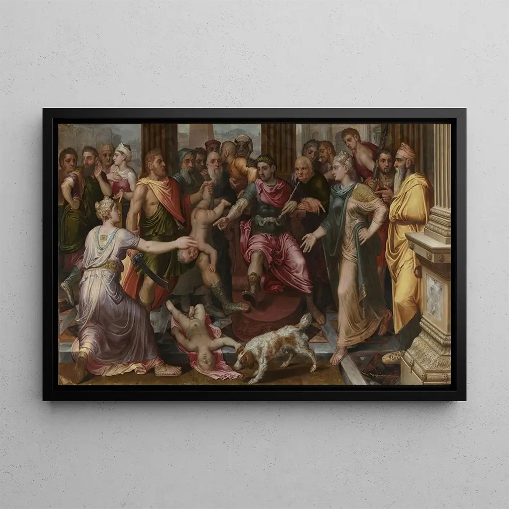 Le Jugement de Salomon : en scene af visdom og retfærdighed Kunsttrykket af Jugement de Salomon dykker ned i en ikonisk scene af visdom og dømmekraft. Frans Floris, med sin beherskelse af farver og former, fremhæver det afgørende øjeblik, hvor kong Salomon, omgivet af hoffolk, skal afgøre en konflikt mellem to kvinder. Personernes udtryk, fra angst til håb, er smukt fanget, hvilket skaber en dramatisk og fængslende atmosfære. Detaljernes rigdom og skyggernes dybde tilføjer en næsten teatralsk dimension til dette værk, og inviterer betragteren til at reflektere over retfærdighedens natur. Frans Floris : en mester i den flamske renæssance Frans Floris, flamsk maler fra det XVI. århundrede, er kendt for sin stil, der kombinerer renæssancens stringens med en spirende barokfølelse. Uddannet i Pieter Aertsens værksted, udvikler han en narrativ tilgang i sine kunstværker, ofte inspireret af bibelske og mytologiske temaer. Hans arbejde skiller sig ud ved sin omhyggelige opmærksomhed på detaljer og dristige brug af farve, hvilket gør ham til en central figur i den flamske kunst. Kunsttrykket af Jugement de Salomon er et af hans mest berømte værker, der viser hans talent for at skildre komplekse scener med stor udtryksfuldhed. En dekorativ tilføjelse med mange fordele Kunsttrykket af Jugement de Salomon er et dekorativt valg, der vil tilføre et strejf af sofistikeret elegance til dit hjem. Uanset om det er i stuen, på kontoret eller i biblioteket, tiltrækker dette lærred øjet og vækker refleksion. Dets trykkvalitet sikrer en bemærkelsesværdig trofasthed over for nuancer og detaljer i det originale værk, samtidig med at det tilbyder en rig og fængslende æstetik. Ved at integrere dette maleri i din indretning skaber du et inspirerende rum, hvor kunst og visdom mødes for at berige din hverdag.
