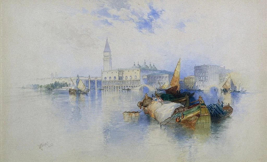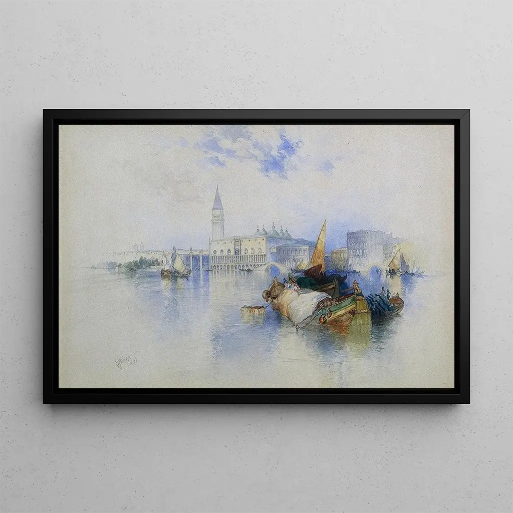 Kunsttrykket "Bassin de San Marco" af Thomas Moran fremkalder en fortryllende atmosfære, hvor lyset danser på de rolige vande i den venetianske lagune. Nuancer af blå og grøn blander sig harmonisk, hvilket skaber en følelse af ro og drøm. Akvarelteknikken, som Moran mestrer, gør det muligt at fange vandets gennemsigtighed og refleksionen af de historiske bygninger, der omgiver kunstværket. Dette kunsttryk inviterer betragteren til at dykke ned i et øjeblik af eftertanke, at føle luftens blidhed og den tidløse skønhed i Venedig.