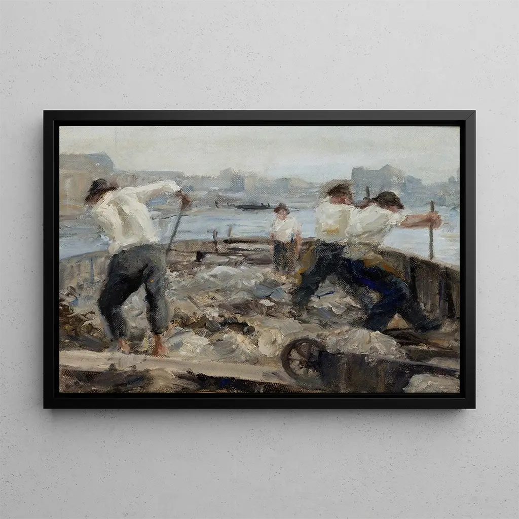 Kunsttrykket af "Sandjægerne" er et ideelt dekorativt stykke til at berige dit hjem. Uanset om det er i en stue, et kontor eller et soveværelse, tilføjer dette maleri et strejf af elegance og ro. Dets kunsttrykskvalitet sikrer en trofast gengivelse af farver og detaljer i det originale værk, hvilket gør det muligt fuldt ud at værdsætte Laveauxs vision. Med sin ubestridelige æstetiske appel vil dette lærred appellere til kunstelskere og dekorationsentusiaster, og gøre hvert blik til et øjeblik af kontemplation.
