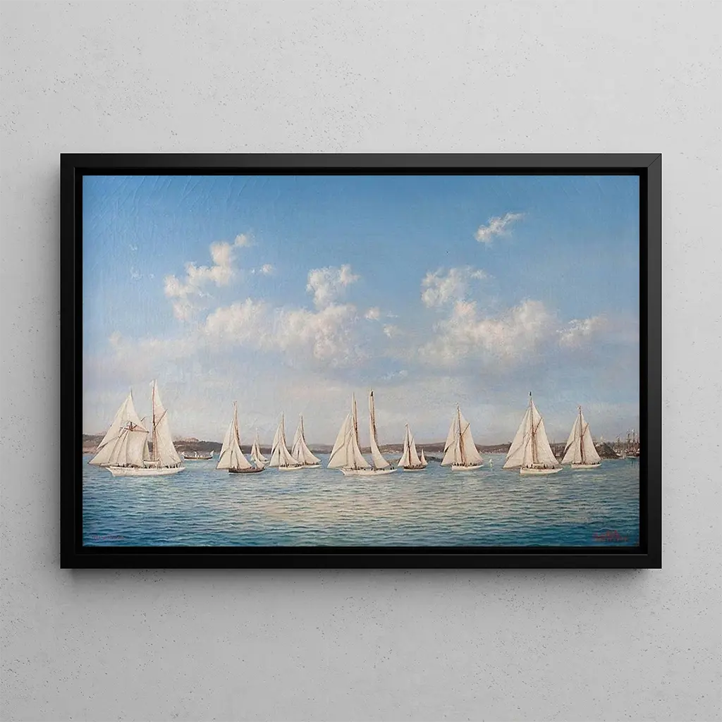 Kunsttrykket "Régate à voile" af Ludwig Rubelli von Sturmfest fremkalder en livlig scene, hvor de hvide sejl yndefuldt folder sig ud over glitrende vande. De iøjnefaldende farver, der spænder fra dybblå til smaragdgrøn, skaber en dynamisk og levende atmosfære, næsten håndgribelig. Kunstnerens teknik, der dygtigt kombinerer realisme med en impressionistisk berøring, gør det muligt at mærke bevægelsen i bølgerne og vindens åndedrag. Hvert detalje, fra refleksioner på vandet til oppustede sejl, bidrager til en harmonisk komposition, der inviterer til flugt og eftertanke.