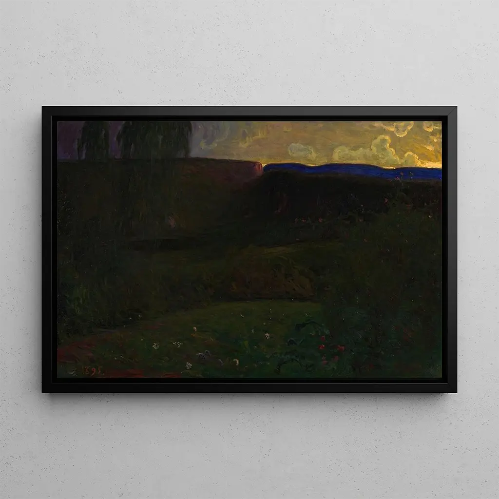 L< L>maleri "Depuis Juvrestolen en Telemark" af Halfdan Egedius fremkalder majestæten af de norske landskaber. De imponerende bjerge, badet i blødt lys, spejler sig i de rolige vande i en sø, hvilket skaber en perfekt harmoni mellem himmel og jord. De livlige farver og de omhyggelige detaljer vidner om Egedius' talent for at fange den rå skønhed i naturen. Den fredelige atmosfære, der udspringer af dette kunsttryk, inviterer til flugt og eftertanke, hvilket gør dette kunsttryk til et sandt mesterværk inden for landskabsmaleri.