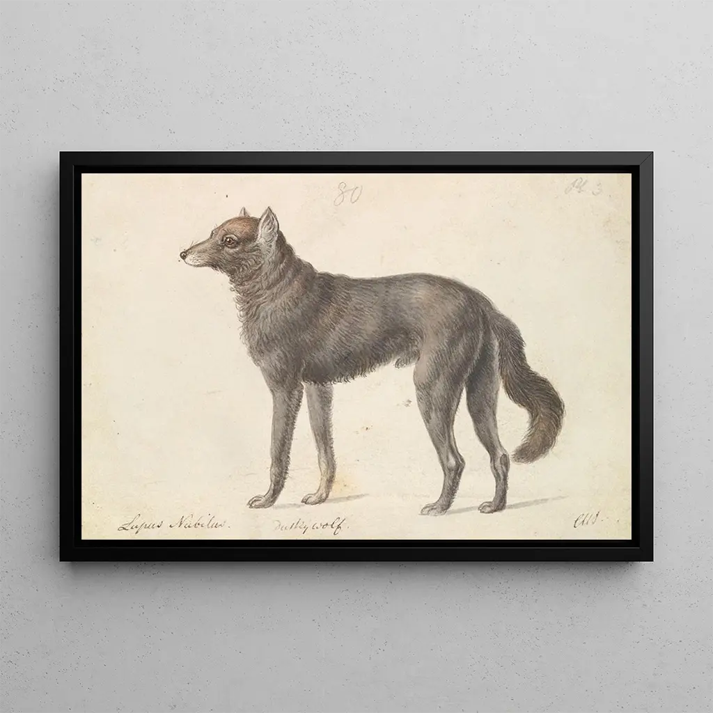 "Loup Noir" af Charles Hamilton Smith er et fængslende kunsttryk, der fremhæver skønheden og kraften i dette ikoniske dyr. Fremstillingen af ulven, med dens mørke pels og skarpe øjne, skaber en atmosfære, der er både mystisk og majestætisk. De omhyggelige detaljer i pelsen og det intense udtryk i ansigtet vidner om en opmærksom observation af naturen. Farvepaletten, domineret af nuancer af sort, grå og hvide strejf, understreger det vilde og utemmelige karakter af dette dyr. Dette kunsttryk inviterer til refleksion over dyrelivet og forholdet mellem mennesket og naturen.