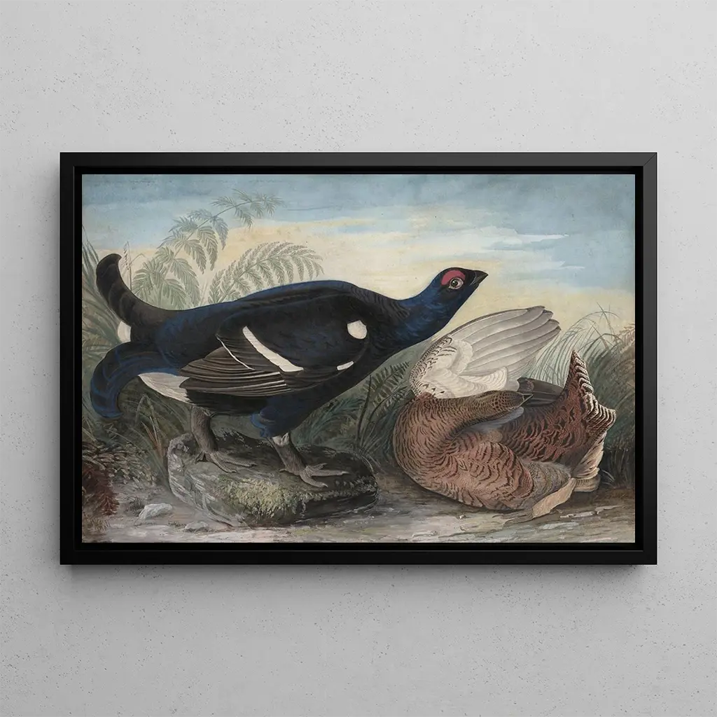 John James Audubon, amerikansk naturalist og maler fra begyndelsen af 1800-tallet, er berømt for sine ornitologiske studier. Med fransk oprindelse emigrerede han til USA, hvor han dedikerede sit liv til observation og gengivelse af fugle. Hans værk, "De Amerikanske Fugle", betragtes som en milepæl i kunstens og videnskabens historie. Audubon formåede at forene videnskabelig præcision med æstetik, hvilket påvirkede mange kunstnere og naturalister. Kunsttrykket "Coqs noirs anglais" er et eksempel på hans unikke tilgang, hvor kunst bliver et middel til at øge bevidstheden om biodiversitet og bevarelse.