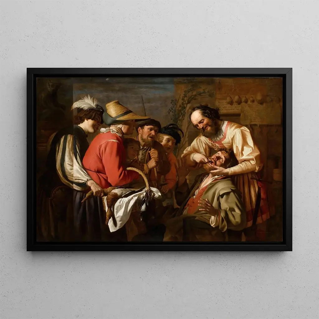Gerard van Honthorst, peintre néerlandais du XVIIe siècle, est reconnu pour son habileté à utiliser la lumière pour créer des compositions saisissantes. Influencé par Caravage, il a su développer un style unique qui mêle réalisme et dramatique. Ses œuvres, souvent centrées sur des scènes de genre ou des portraits, témoignent d'une époque où l'art se faisait le reflet des mœurs et des pratiques sociales. Le Tireur de dent, en particulier, illustre non seulement son talent, mais aussi l'évolution des soins médicaux à cette période. Cette kunsttryk permet de redécouvrir un aspect fascinant de l'histoire de l'art.