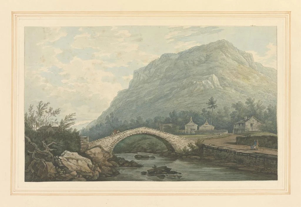 Udsigt over landsbyen ved Rydal-broen - Joseph Farington